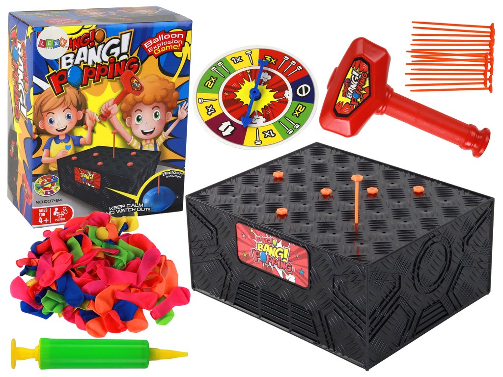 Naša igra je odlična kombinacija zabave, spretnosti in tekmovanja. Pravila so preprosta: napihnite balone, jih položite v posebno škatlo, pripnite žebljičke na igralno ploščo in naključno izberite število žebljičkov za zabijanje. Vaša naloga je, da natančno zabijate žebljičke v škatlo, obenem pa se izogibate temu, da bi prebili balon v notranjosti. Za vsak uspešno zabit žebelj, ki ne poškoduje balona, pridobite točko.
