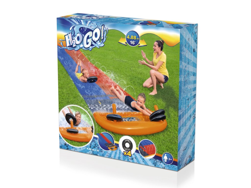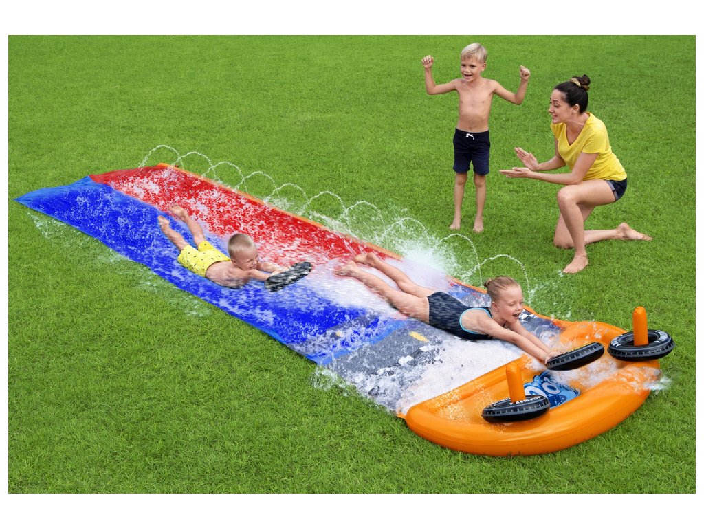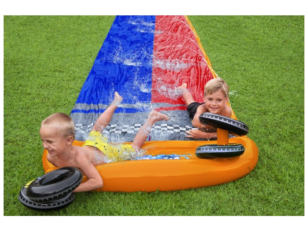 Dvojni vodni tobogan za vrt 4,88 m Bestway dirkalna steza