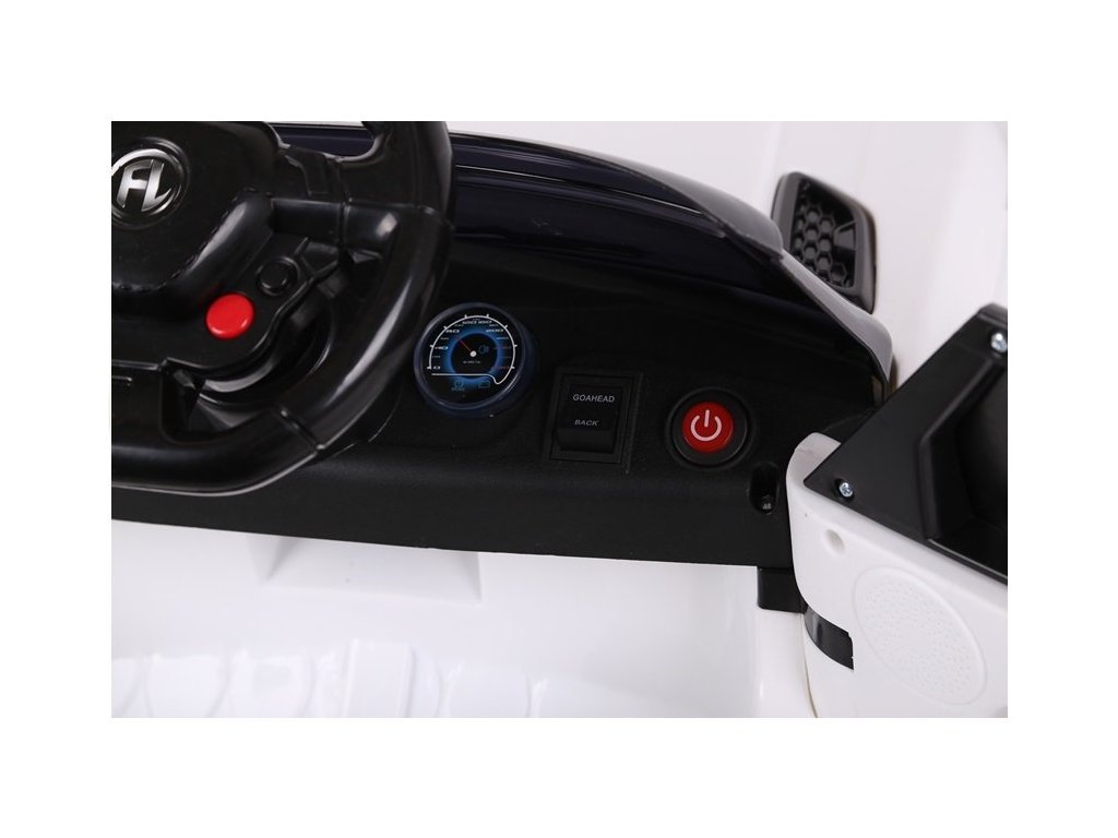 Elektrické auto dokáže jezdit směrem dopředu i dozadu na 3 rychlosti vpřed a 3 rychlosti vzad, doprava, doleva. Auto je možné ovládat i přes 2,4GHz dálkové ovládání. Autíčko je také vybaveno dálkovým ovládáním, pomocí něhož můžete řídit směr a bezpečnost jízdy Vašeho dítěte. Autíčko lehce zvládne nerovné, zpevněné i nezpevněné terény a mírné kopečky s max. stoupáním 10%. Dále je autíčko vybaveno předním a zadním LED osvětlením, bezpečnostními pásy, bočními zrcátky a zvuky volantu či klaksonu. K autíčku lze připojit kabel Mini Jack, který je součástí balení a pouštět tak MP3 soubory. Dále lze připojit i USB kabel. Záruční doba 24 měsíců. Toto exkluzivní autíčko přinese potěšení jak pro dítě, tak i pro rodiče. Výrobek má evropský certifikát CE. Vhodná věková kategorie od 1 do 3 let.