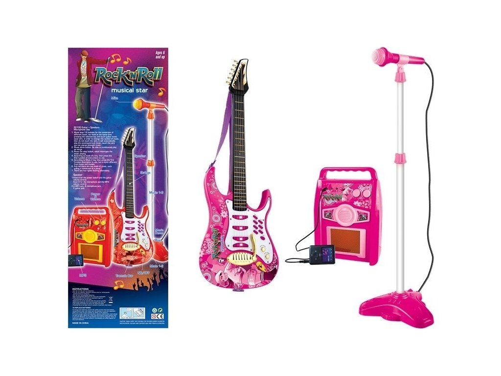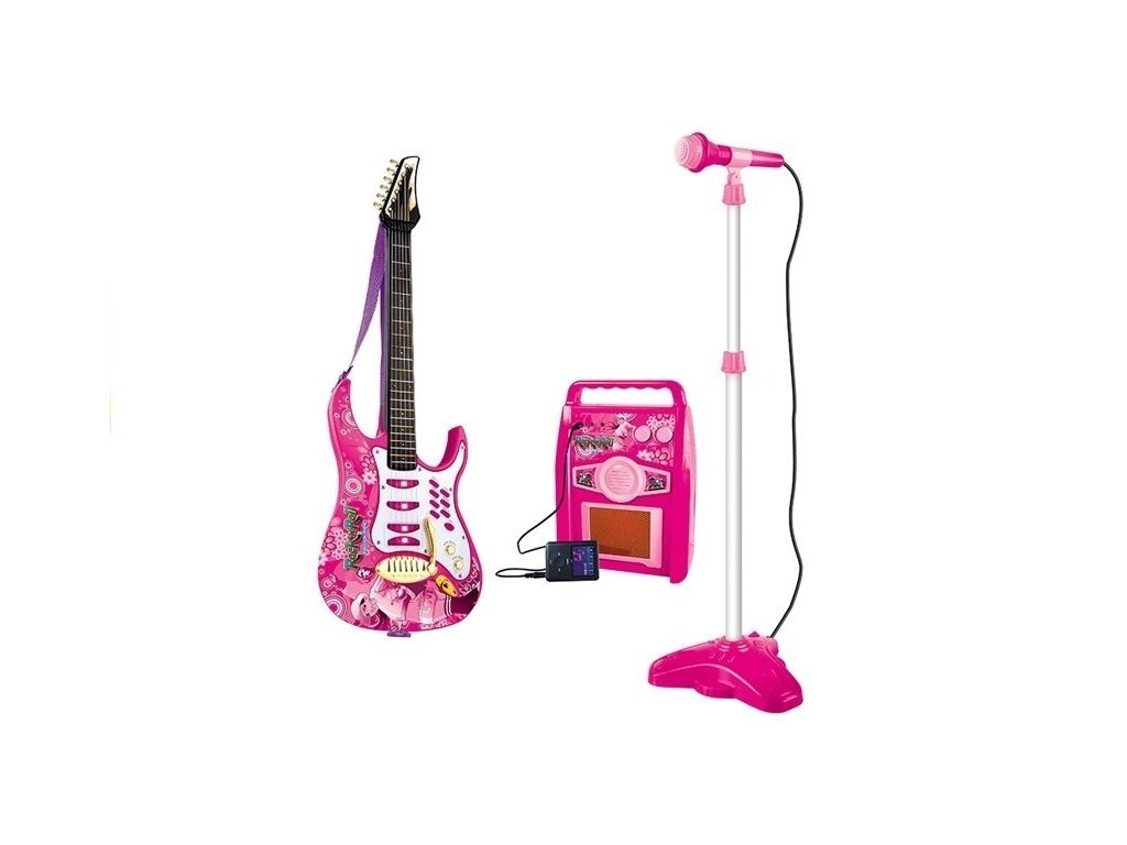 Električna kitara z mikrofonom in ojačevalcem roza