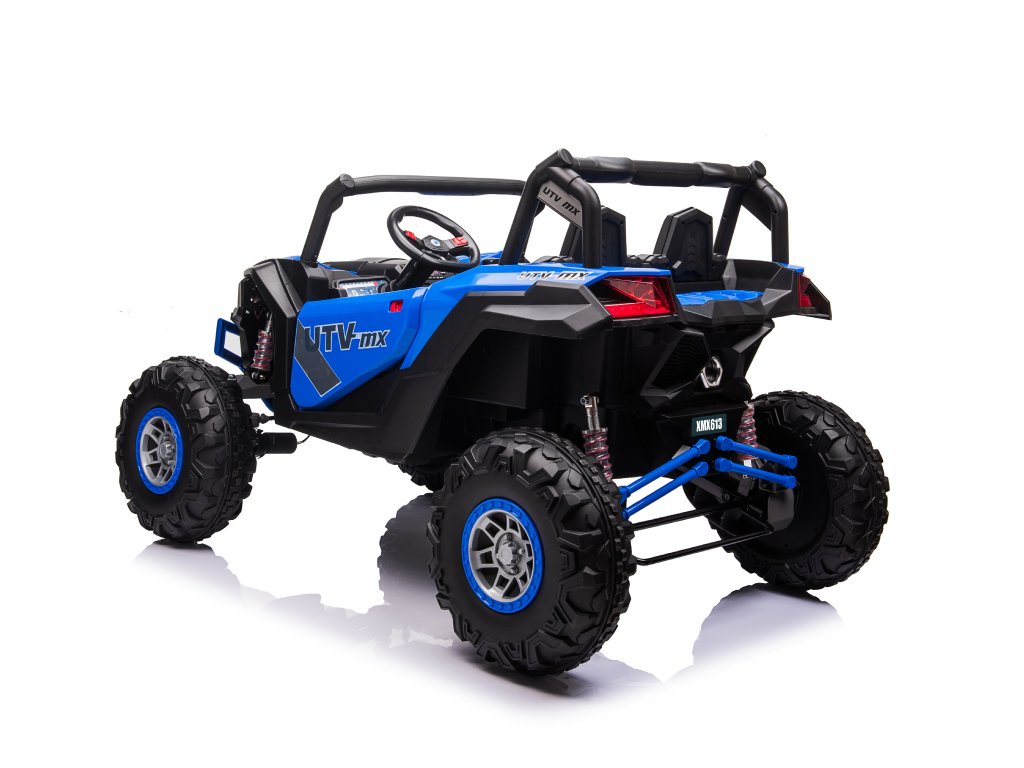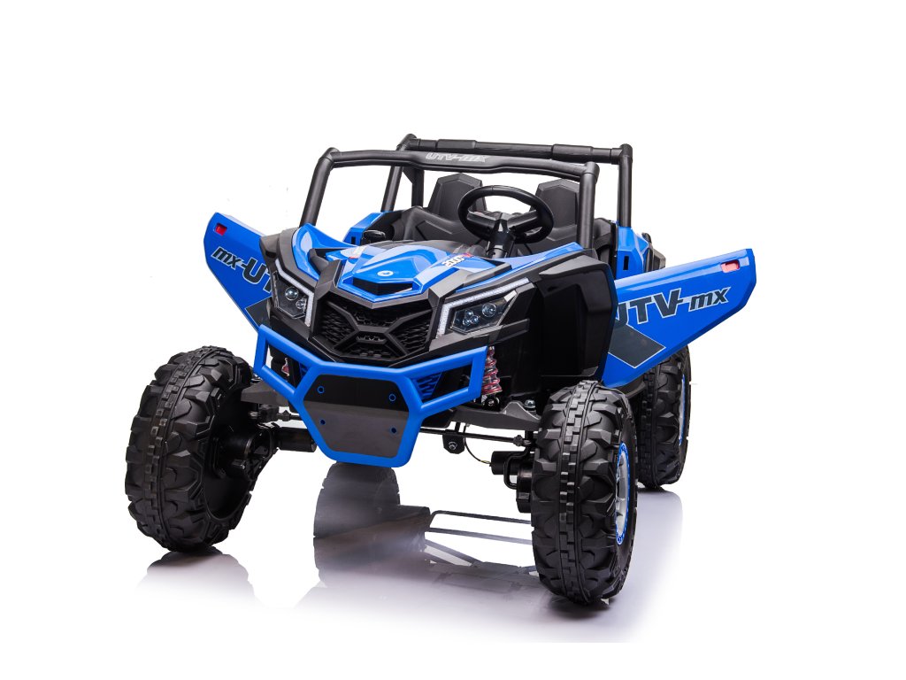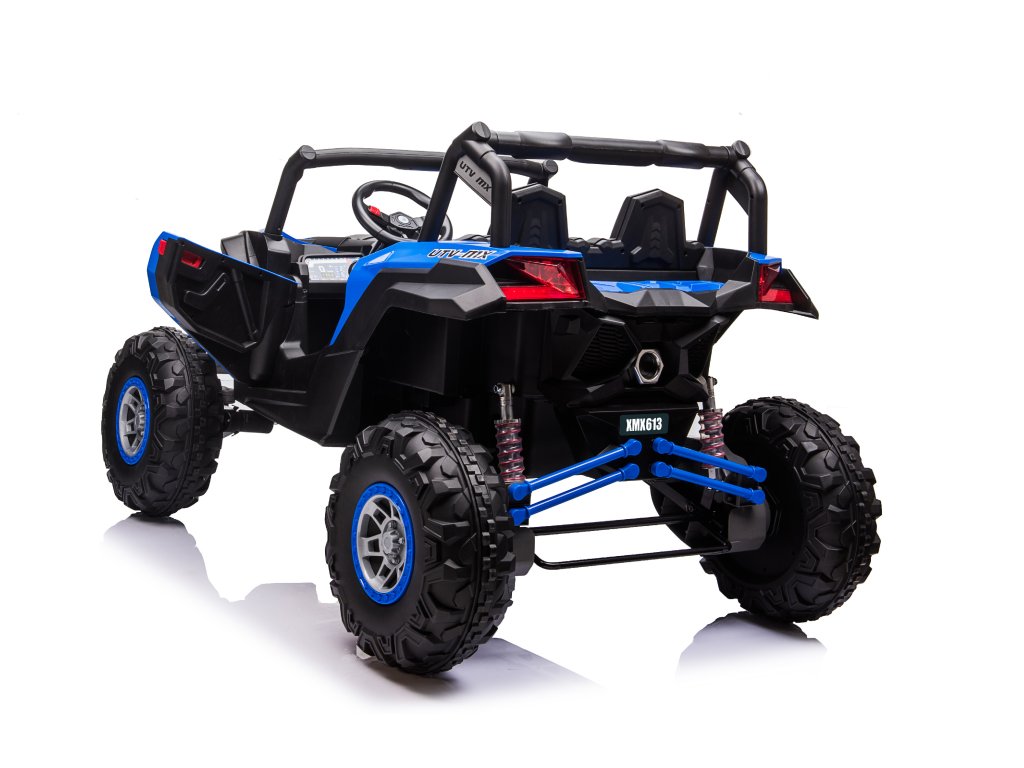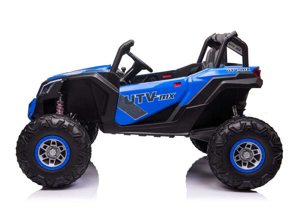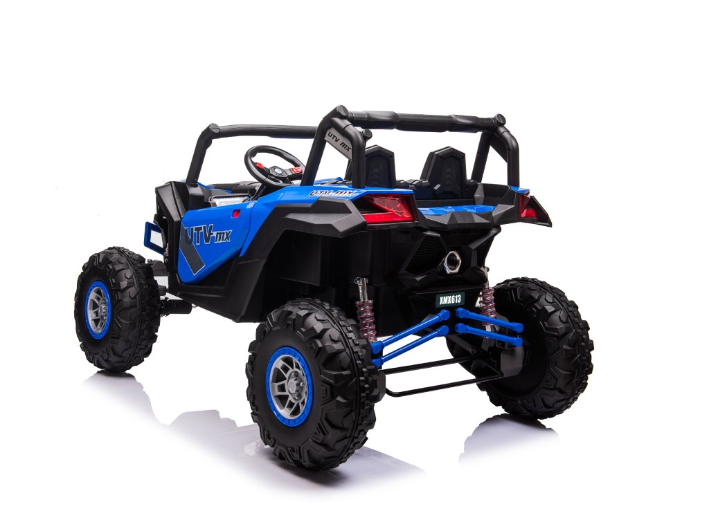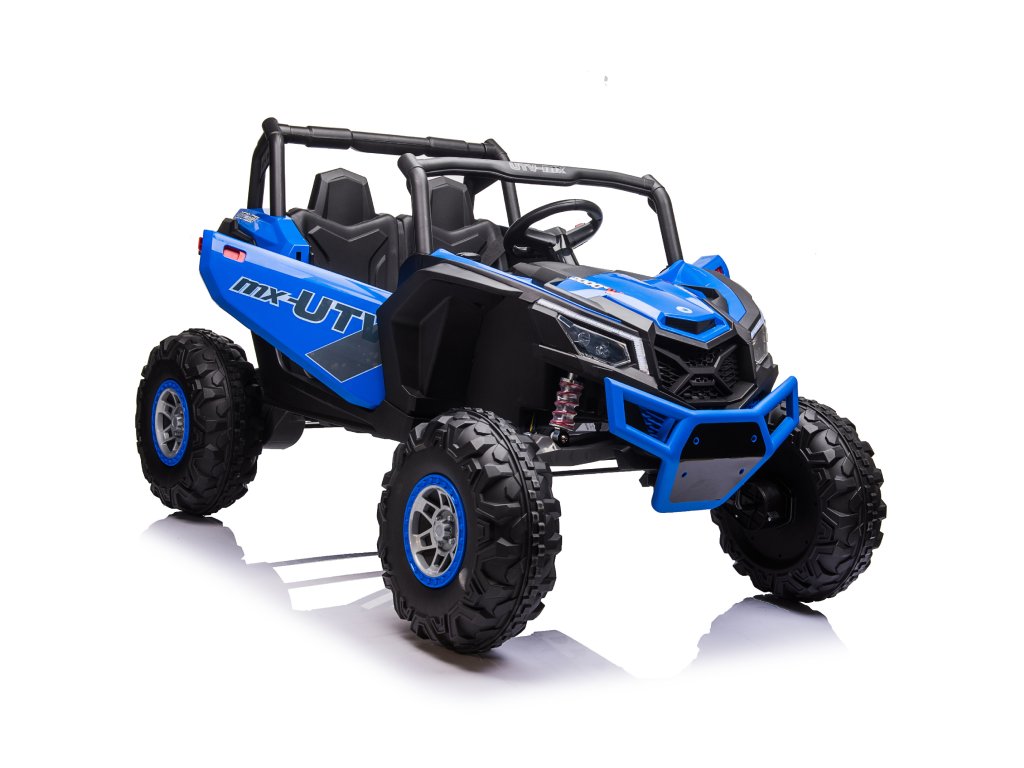 Otroški električni Buggy UTV-MX s štirimi zmogljivimi električnimi motorji 200W in baterijo 24V 9Ah. Za udobno vožnjo bodo poskrbela velika penasta EVA kolesa, ki skupaj z motorji premagujejo teren ali neutrjene površine.