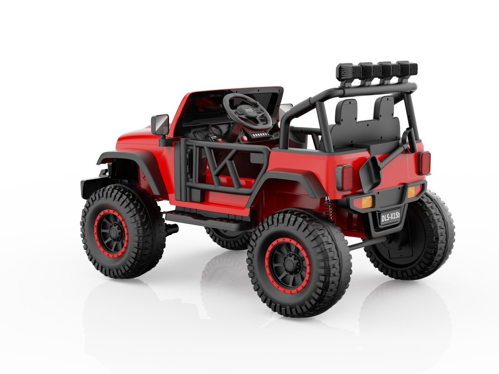 Otroški električni voziček BIG FOOT ima štiri zmogljive elektromotorje s skupno močjo 800 W in kolesa iz pene EVA .