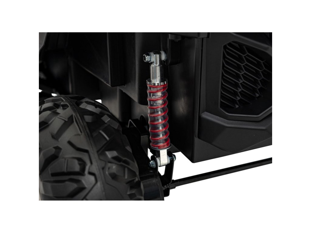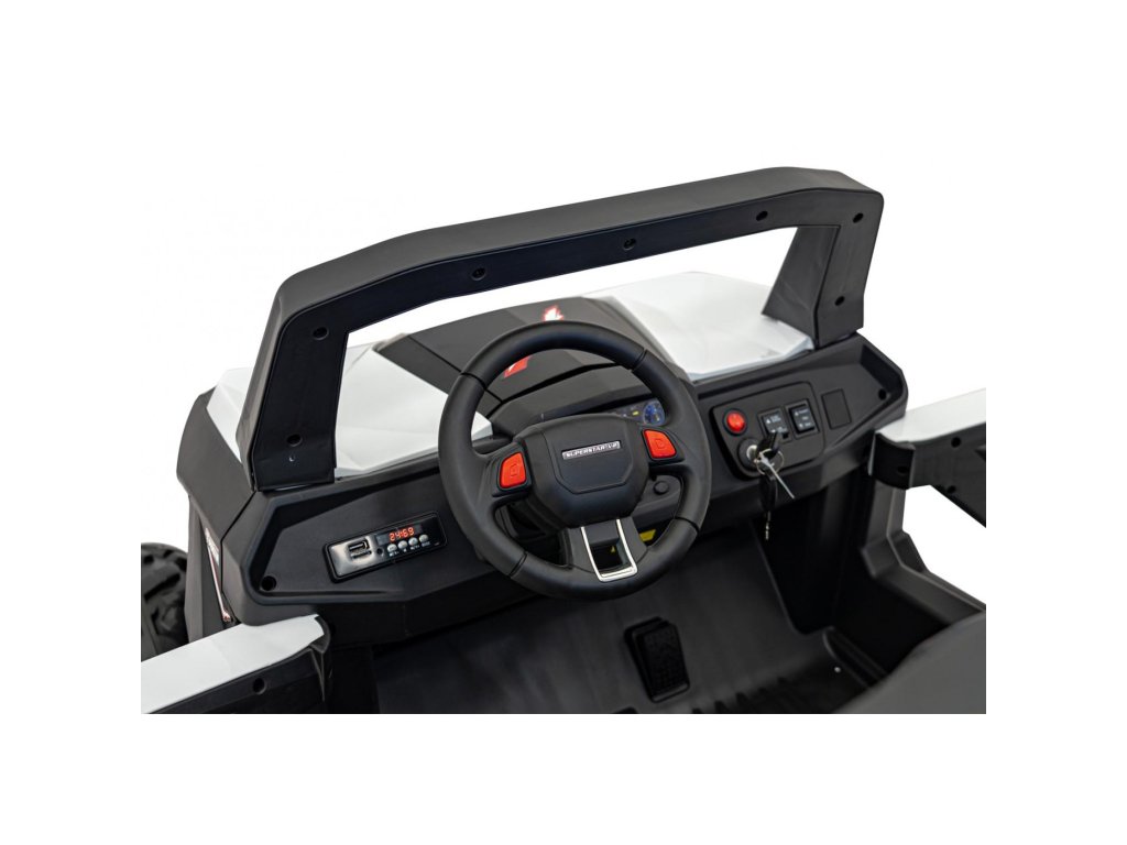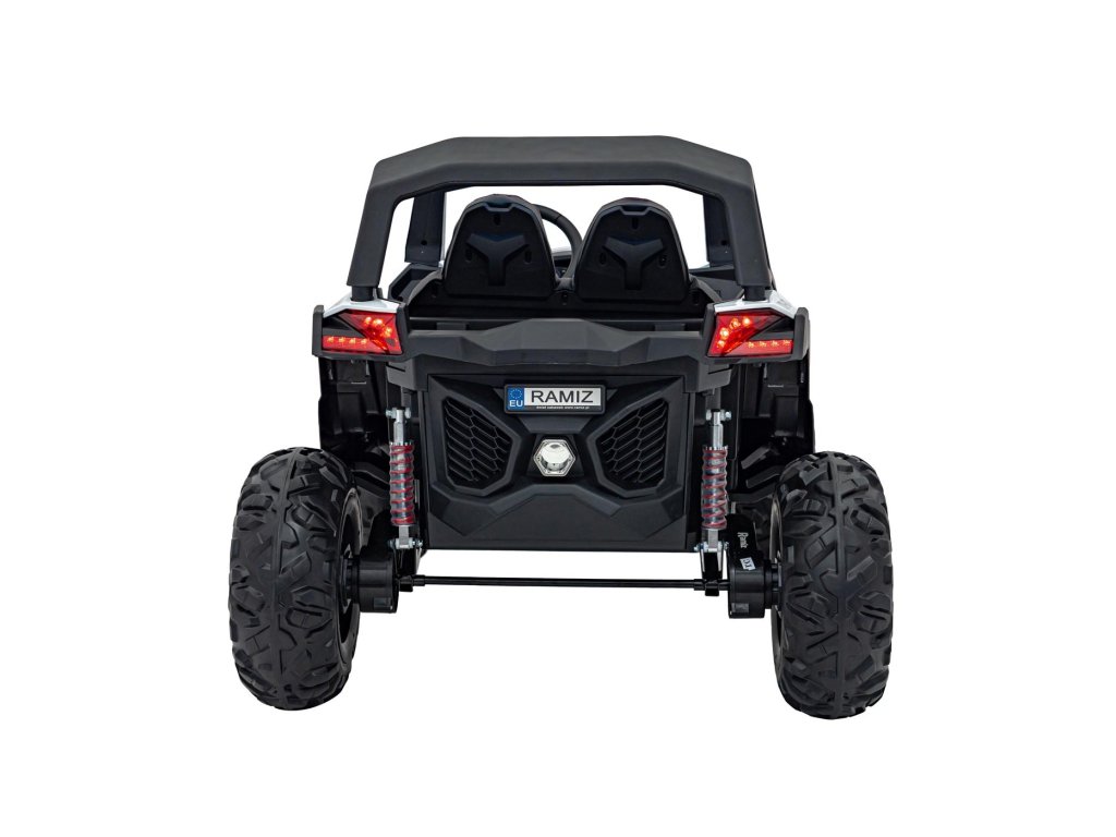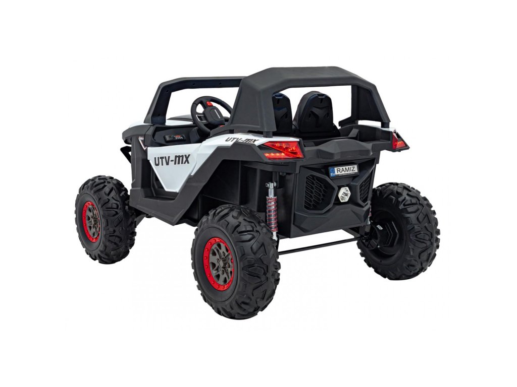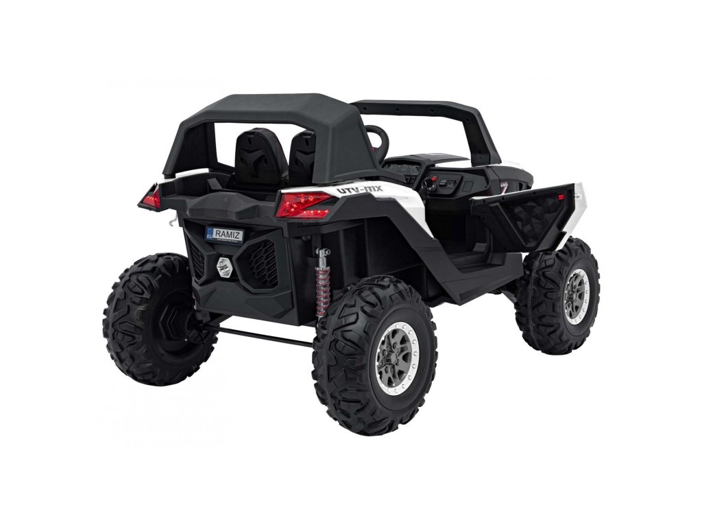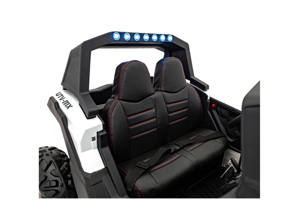 Otroški avtomobilček Buggy UTV-MX 2000N je opremljen z mehkimi kolesi iz pene EVA, ki so tiha in se prilagajajo različnim vrstam terena. Otrok sedi v udobno oblikovanem sedežu iz eko usnja , varnost pa zagotavljajo varnostni pasovi.