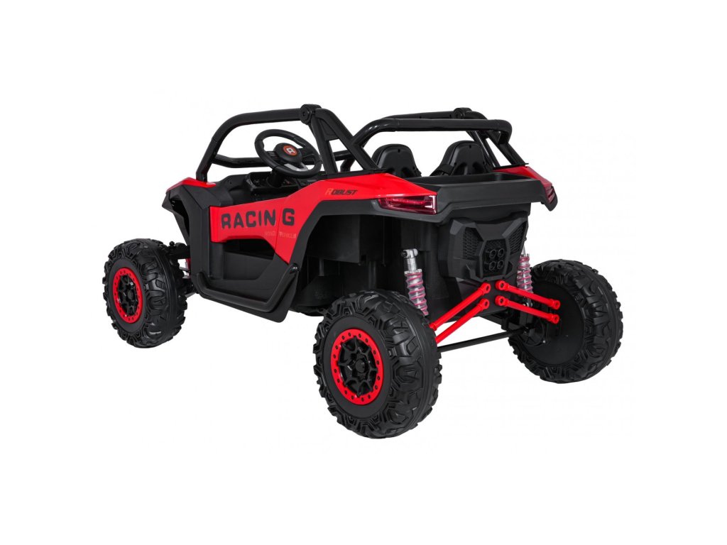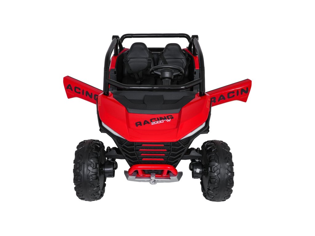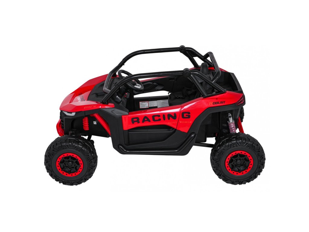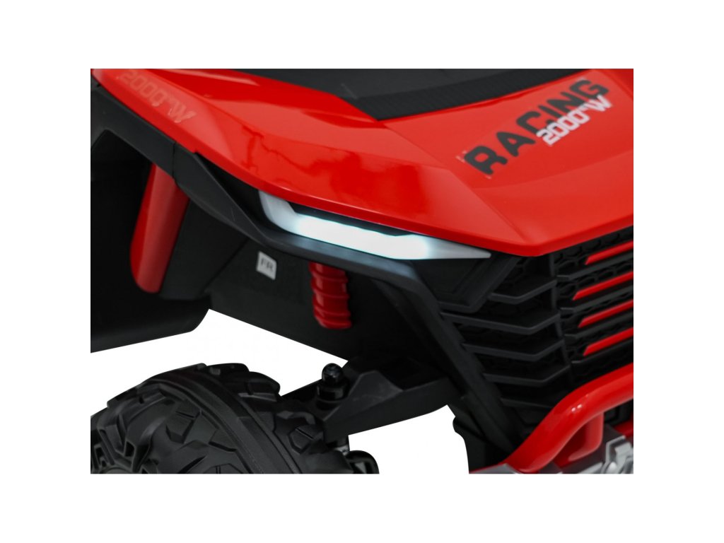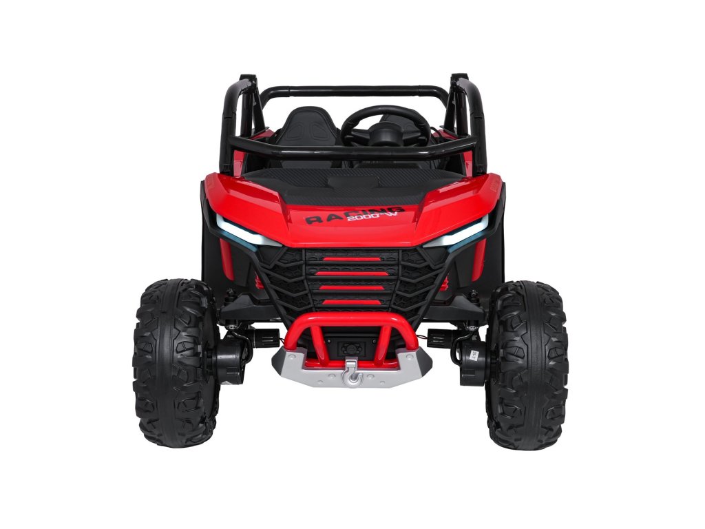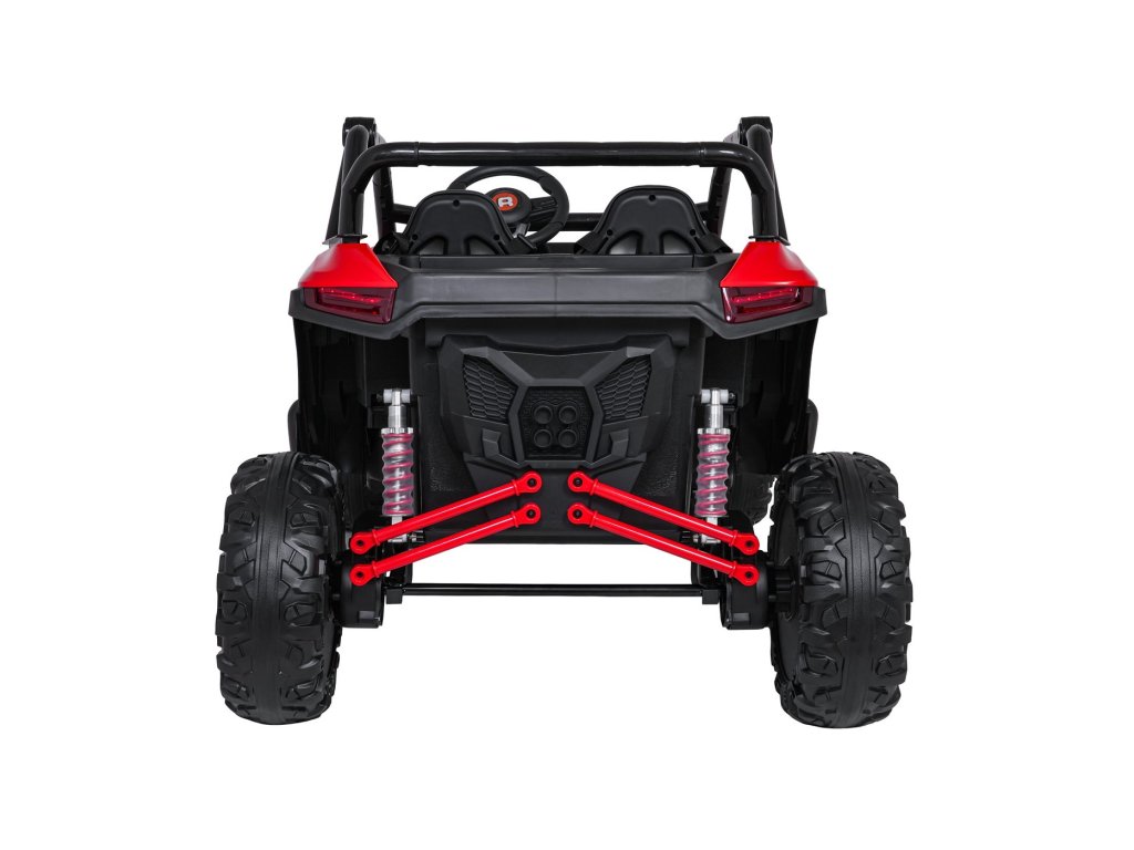 Otroški električni avtomobilček RACING Road 2000 24V je robusten in vsestranski model za dva mala voznika, ki si želita privoščiti pravo pustolovščino. Zahvaljujoč štirim zmogljivim motorjem (4 × 120W) in močni 24V 7Ah bateriji avtomobilček obvladuje ne le gladke površine, temveč tudi rahlo neraven teren. Mehka kolesa iz pene EVA in nastavljivo zadnje vzmetenje zagotavljajo gladko vožnjo brez nepotrebnih sunkov, funkcija mehkega zagona pa prispeva k varnosti in udobju.