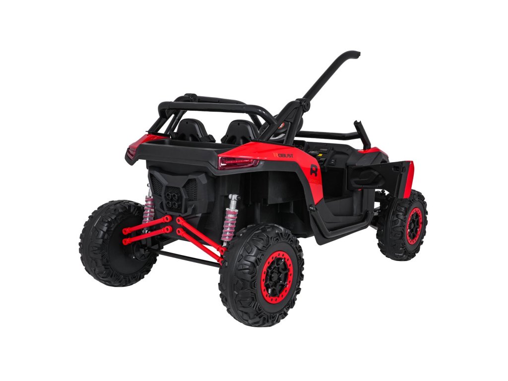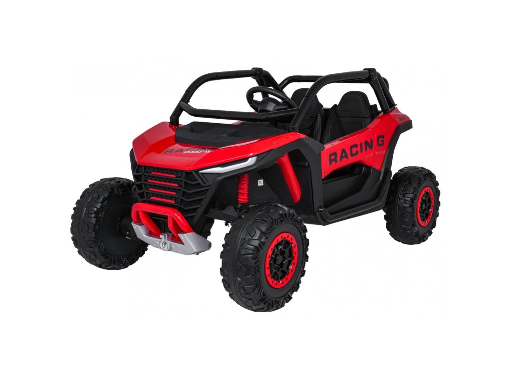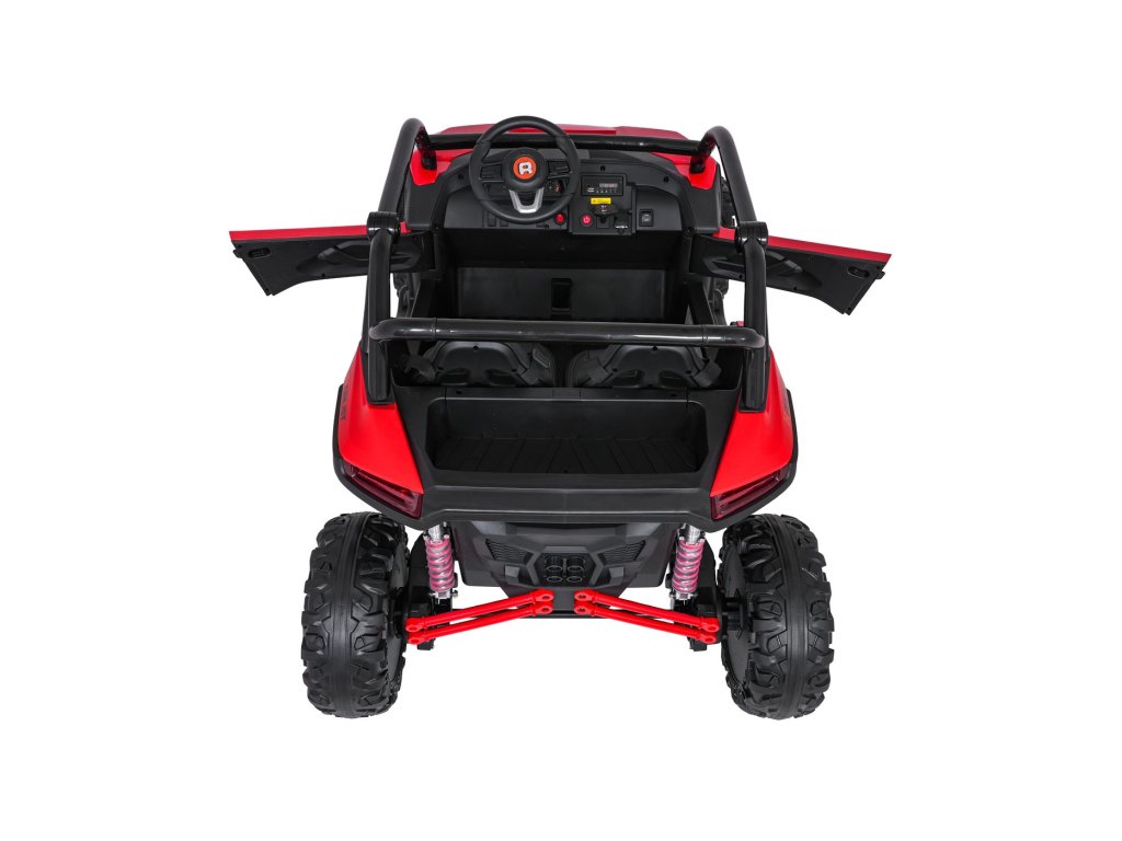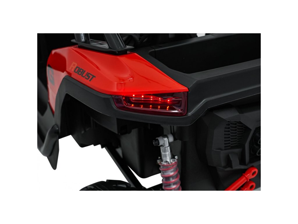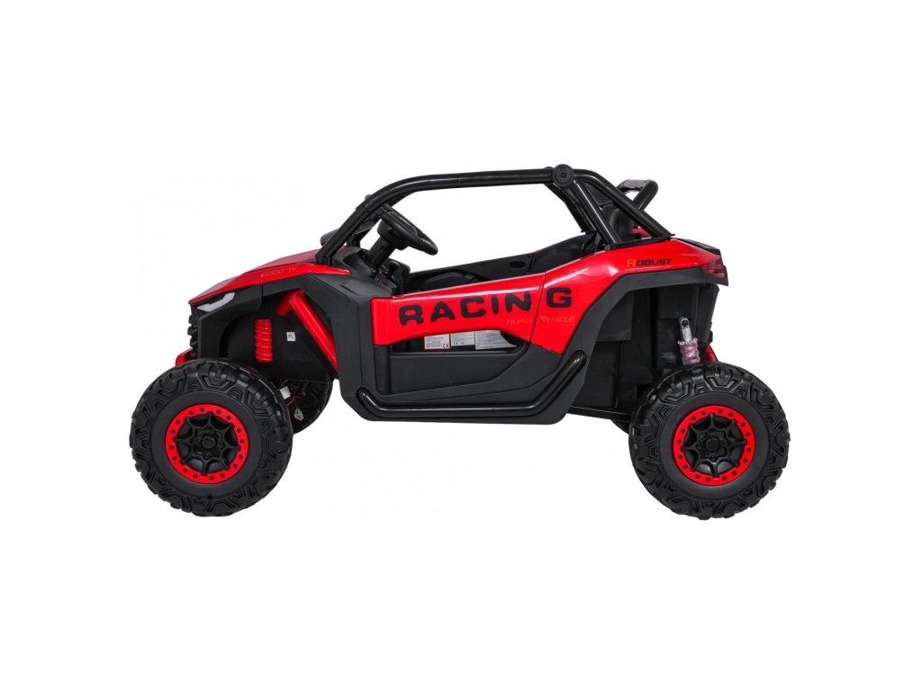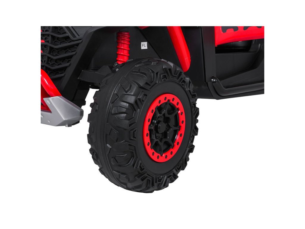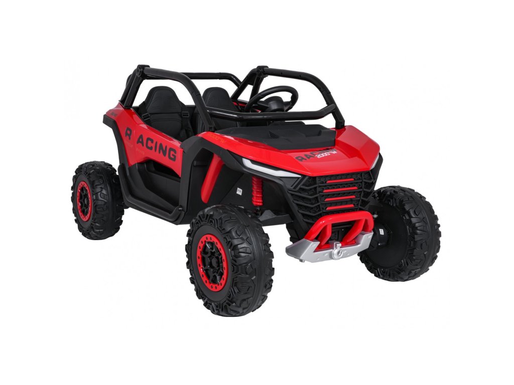 Otroški električni avtomobilček RACING Road 2000 24V je robusten in vsestranski model za dva mala voznika, ki si želita privoščiti pravo pustolovščino. Zahvaljujoč štirim zmogljivim motorjem (4 × 120W) in močni 24V 7Ah bateriji avtomobilček obvladuje ne le gladke površine, temveč tudi rahlo neraven teren. Mehka kolesa iz pene EVA in nastavljivo zadnje vzmetenje zagotavljajo gladko vožnjo brez nepotrebnih sunkov, funkcija mehkega zagona pa prispeva k varnosti in udobju.