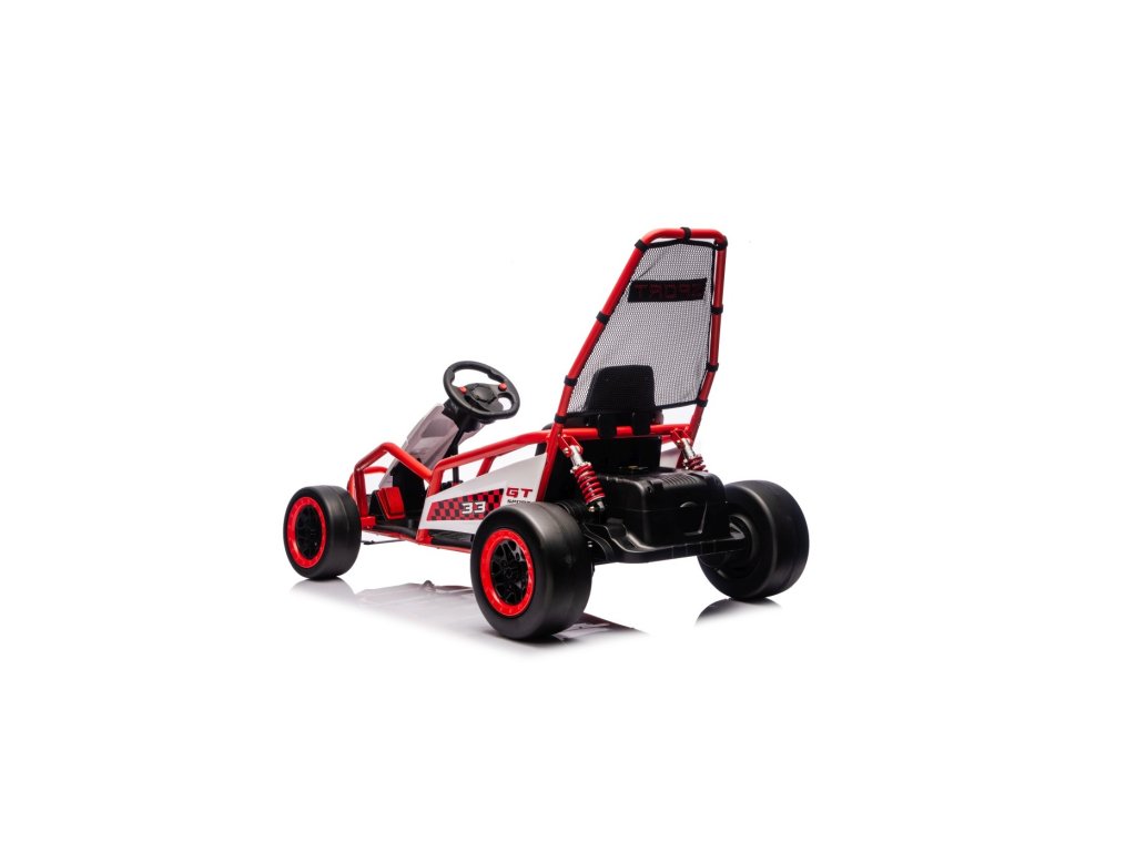Motokart je opremljen s sprednjimi kolesi EVA za gladko vožnjo, medtem ko zadnja plastična kolesa omogočajo enostavno driftanje. Seveda so na voljo nastavljivi zadnji blažilniki, gladek zagon in varnostni pasovi za večjo varnost med vožnjo. Vse skupaj dopolnjuje sodobna avdio plošča z Bluetooth in MP3 predvajalnikom.