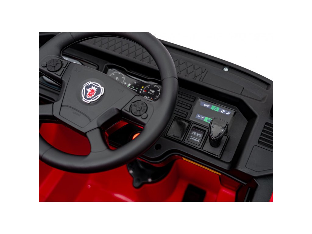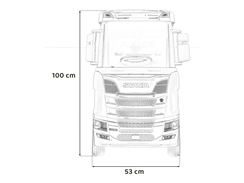 Scania R-SERIE je dodelan električni tovornjak za otroke, ki bo navdušil vse male ljubitelje cest in velikih strojev. S štirimi 35 W motorji in dvema 12 V/7 Ah baterijama ponuja dovolj moči za hitro vožnjo tudi po zmerno zahtevnem terenu. Zahvaljujoč funkciji "soft start" je zagon gladek in varen.
