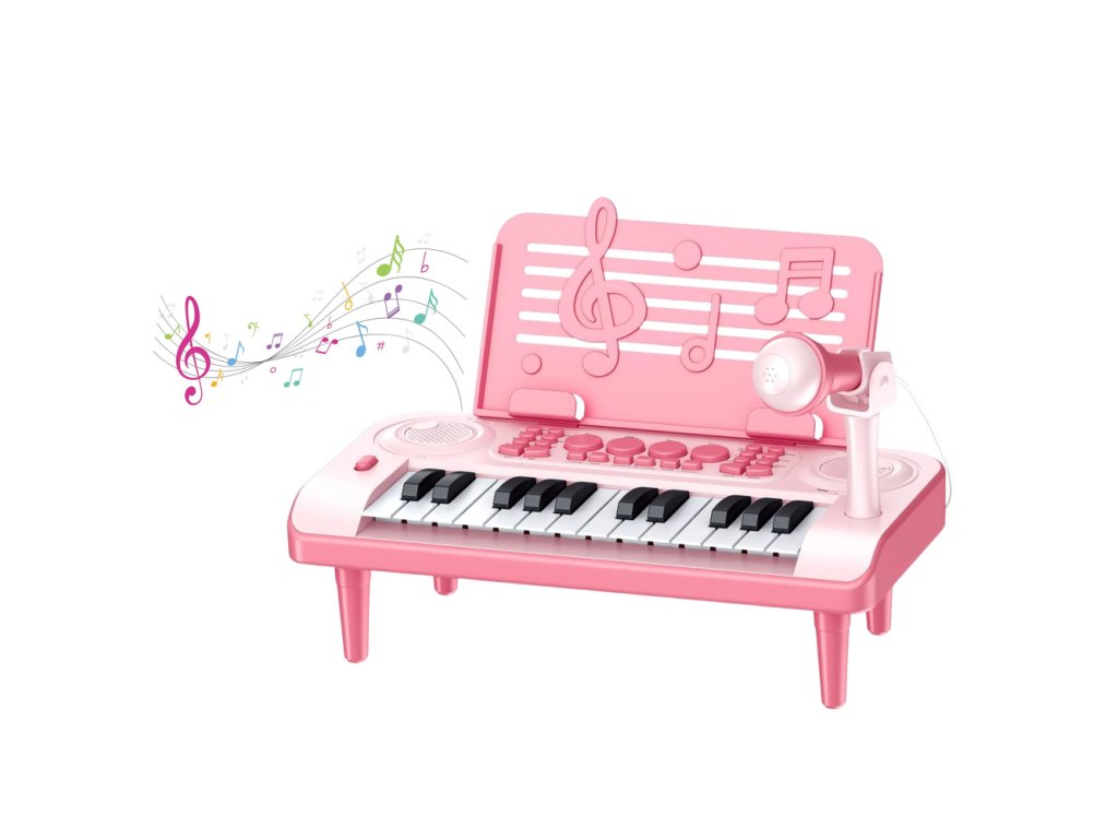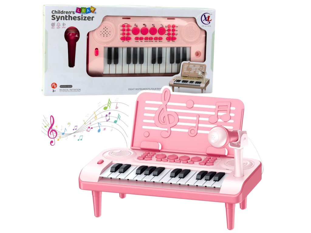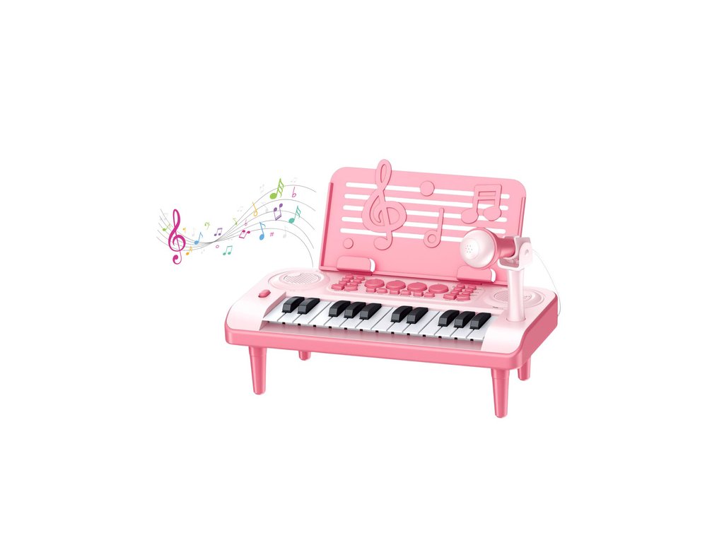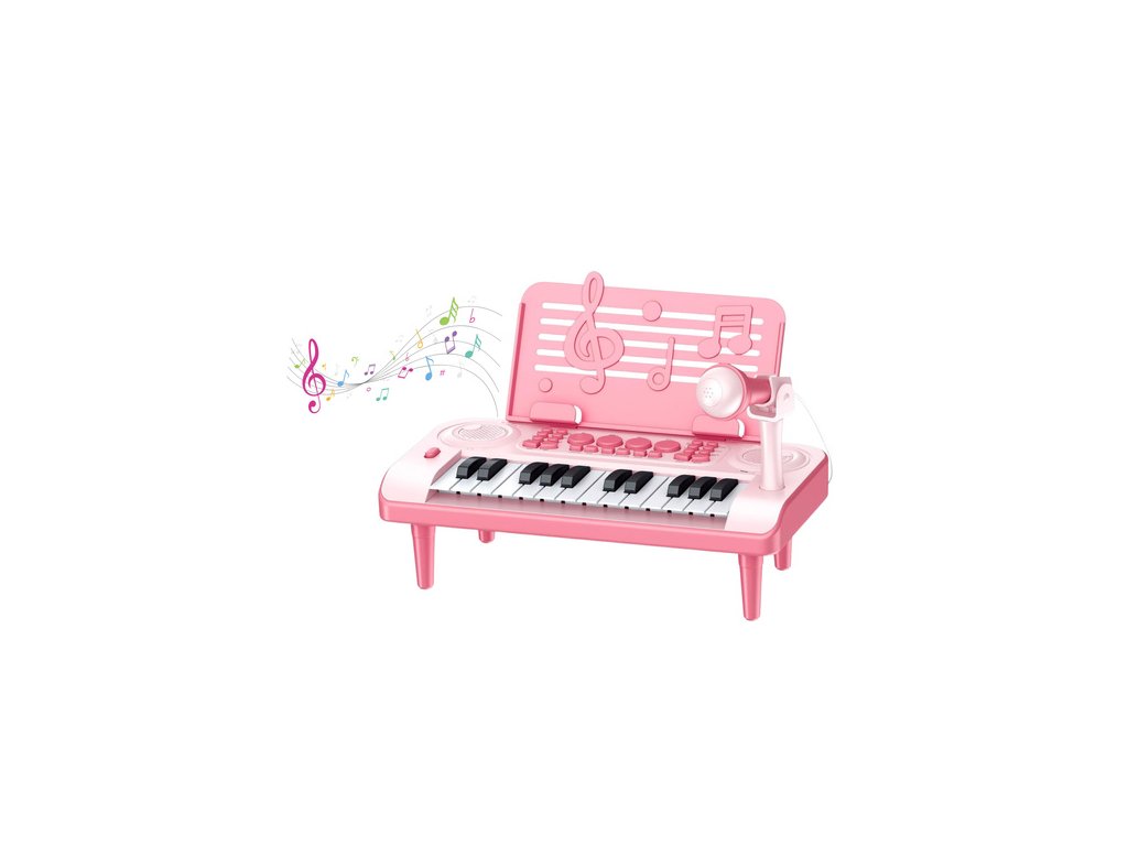 Elektronski učni klavir z držalom za note in mikrofonom 24K roza