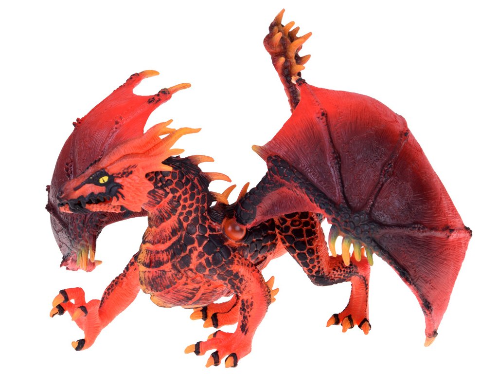 Figura rdečega zmaja Veličasten zmaj s premičnimi krili. Ta impozantna figura prikazuje mogočnega zmaja z luskami v barvah ognja, ostrimi kremplji in veličastnimi, premičnimi krili ter premično čeljustjo. Figura je skrbno izdelana iz visoko kakovostnih materialov in očara z realistično izdelanimi detajli. Omogoča veliko zabave ob ustvarjanju zgodb in pripovedovanju.