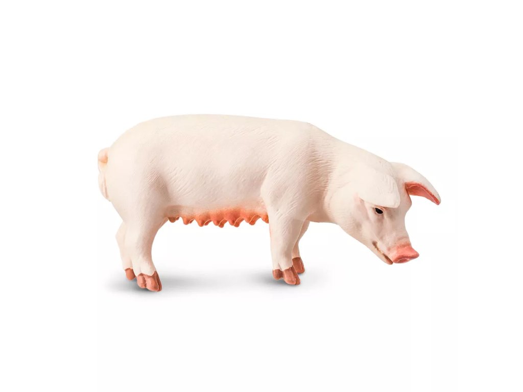 Realistično oblikovana figura svinje, primerna za domiselno igro in nazorne predstavitve pri izobraževanju. Prikazuje svinjo pri brskanju po zemlji in iskanju hrane.