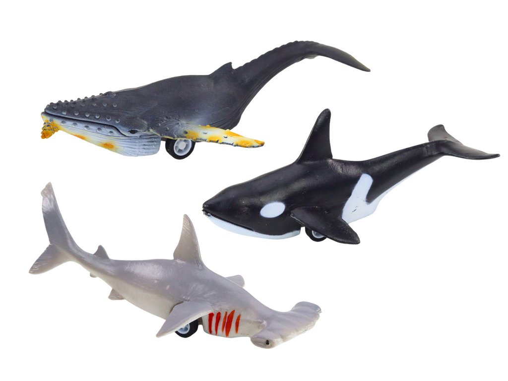 Figurice vozil in morskih živali s trenjem - morski pes, ork, 6 kosov