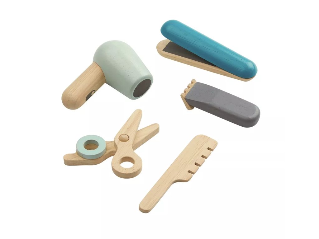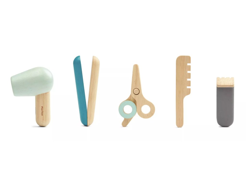 Interaktivni lesen set, namenjen igri frizerstva, ki spodbuja fino motoriko, koordinacijo, domišljijo in razvoj govornih spretnosti.