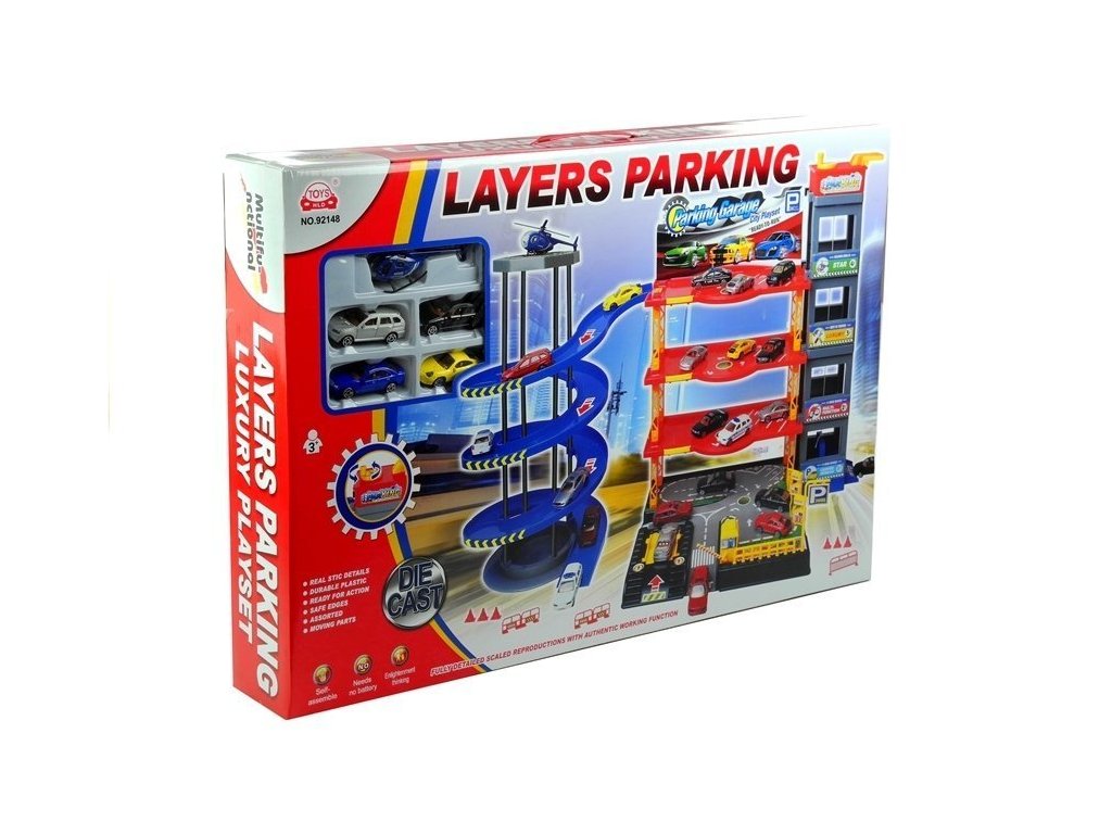 Veliko trietažno parkirišče z dvigalom in toboganom bo zagotovo prineslo veliko zabave vsakemu malemu oboževalcu. Večnivojska garaža z dvigalom je prilagojena velikosti avtomobilčkov in helikopterja, ki so del kompleta.