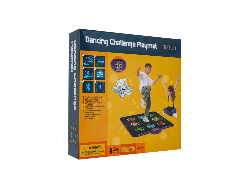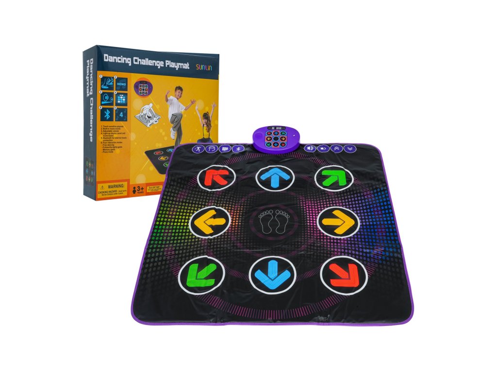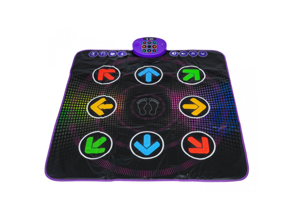 Ta interaktivna plesna podloga je odlična izbira za otroke, stare 3 leta in več, ki imajo radi gibanje, glasbo in izzive. Ponuja ne le barvit dizajn in prijetno površino, temveč tudi pameten svetlobni prikaz s puščicami, ki kažejo, kam stopiti. Zahvaljujoč vgrajeni povezavi Bluetooth lahko predvajate svojo najljubšo glasbo in plešete v svojem ritmu ali pa uporabite prednastavljene načine za učenje in zabavo.