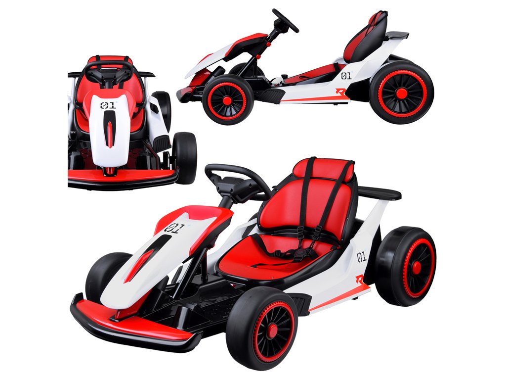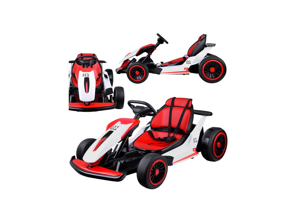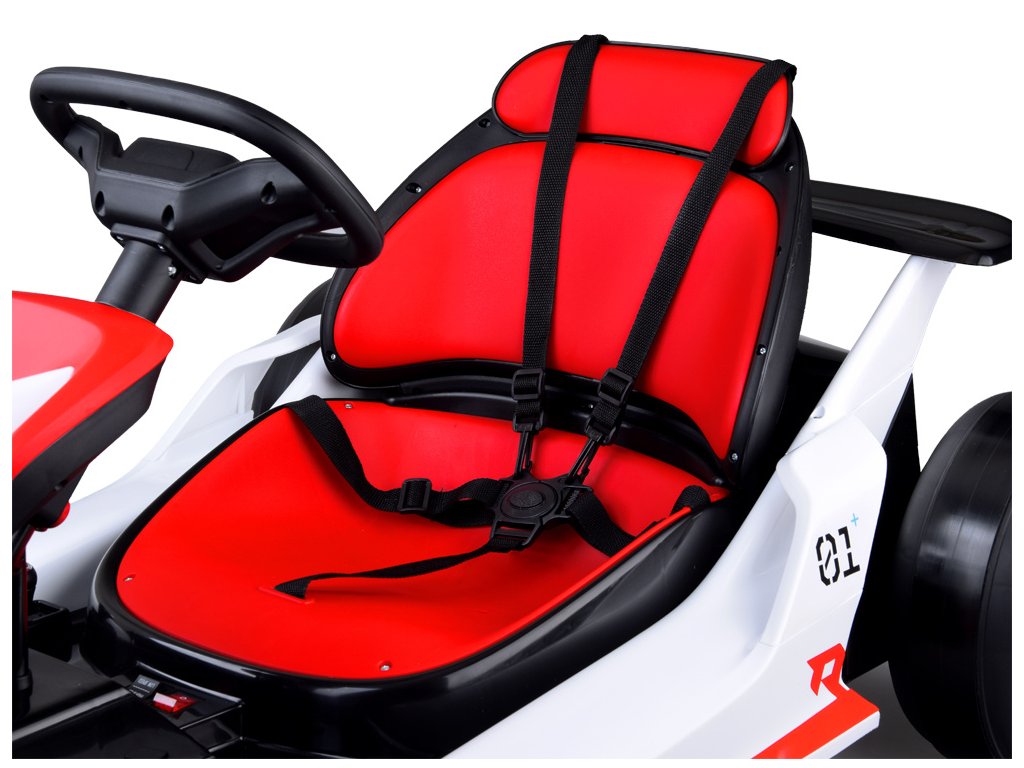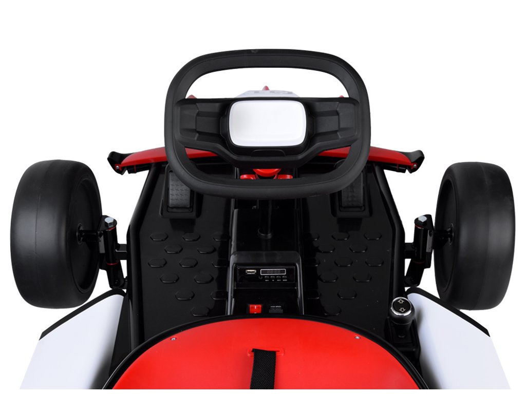 Otroški električni go-kart je idealna izbira za male ljubitelje športnih vozil. Ponuja udobje in varnost zahvaljujoč robustnemu kovinskemu okvirju, plastični karoseriji, ergonomičnemu sedežu in športnemu dizajnu. Sedež s 5-točkovnimi varnostnimi pasovi poskrbi za večje udobje med vožnjo. Go-kart je opremljen z 2 x 24 V 200W in 1 x 24V 7Ah baterijo, ki zagotavlja zadostno moč in čas vožnje. Ima upravljalno ploščo s funkcijami start/stop (z realističnim zvokom motorja), vožnja naprej in nazaj, nadzor glasnosti ter predvajanje melodij in zvočnih učinkov. Zahvaljujoč funkciji Bluetooth je mogoče priključiti tudi zunanje naprave.