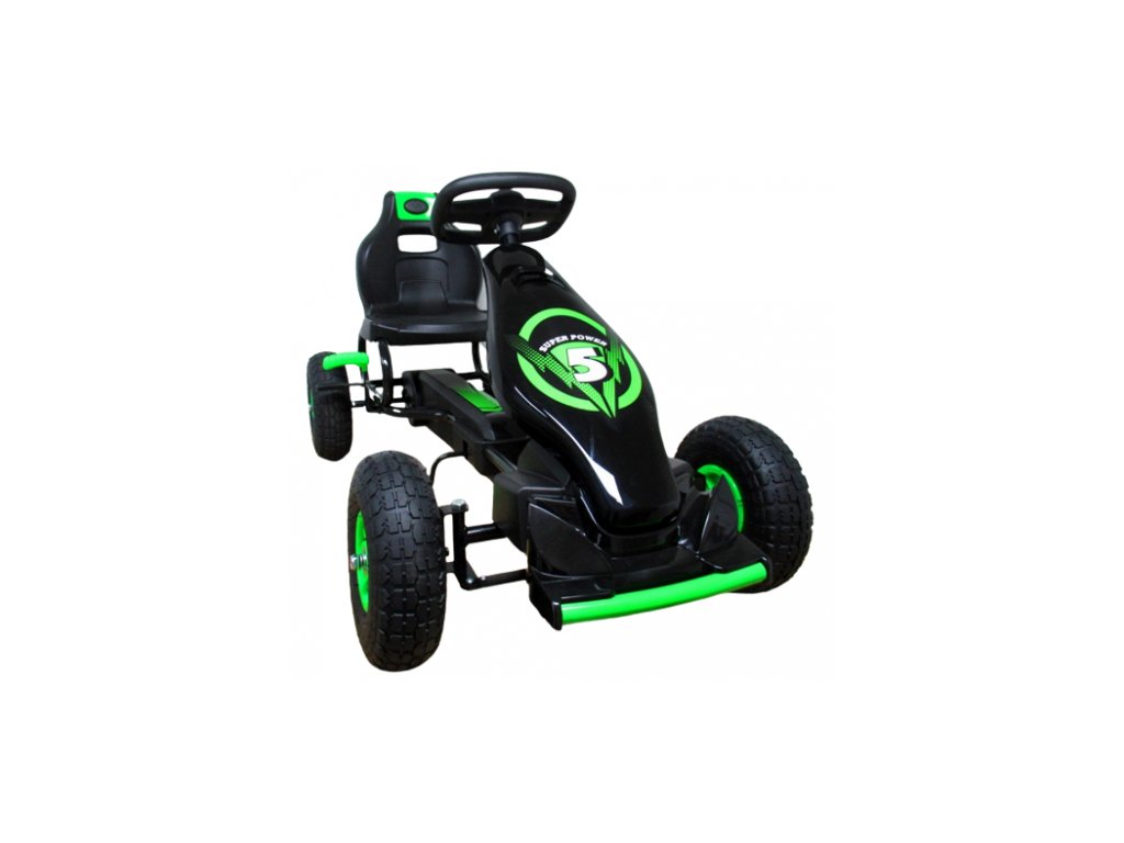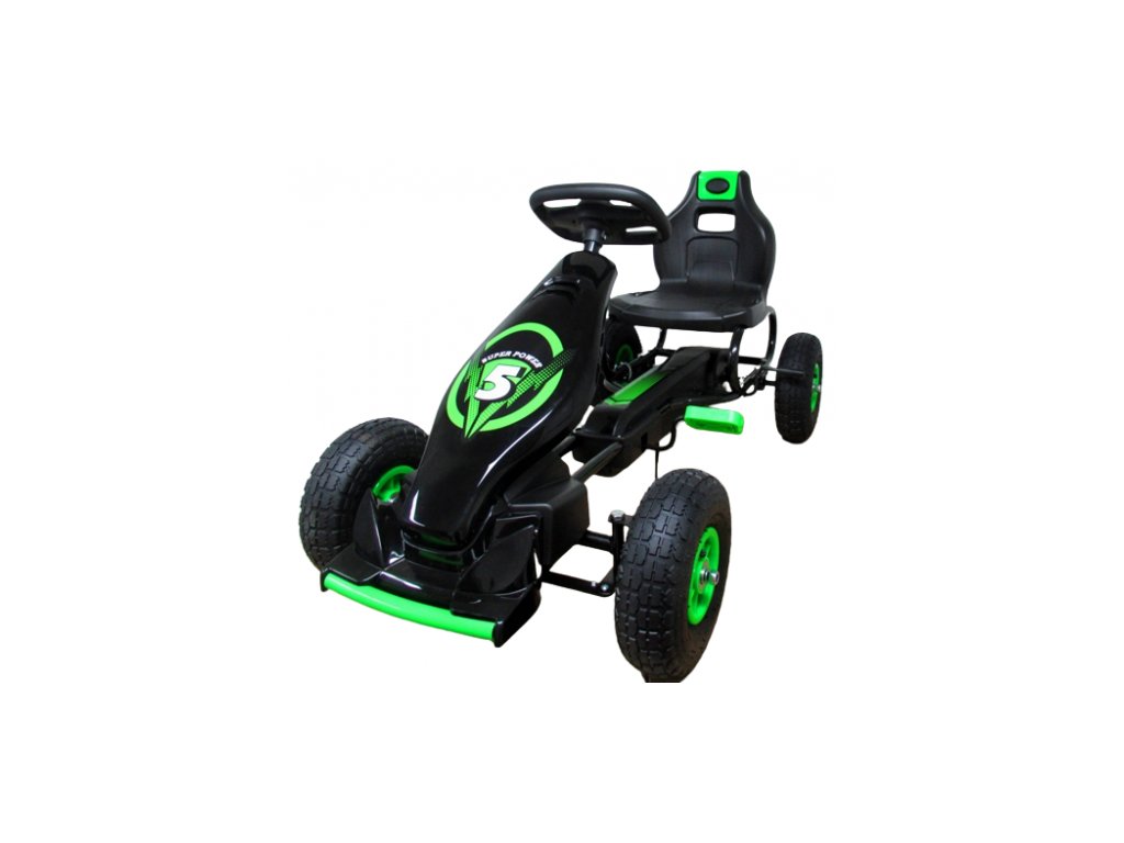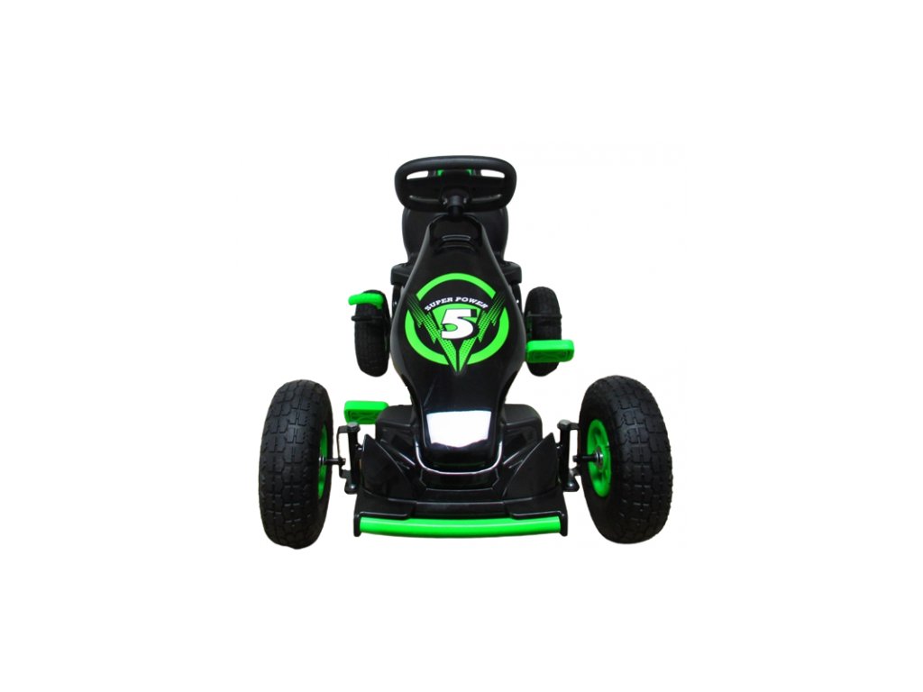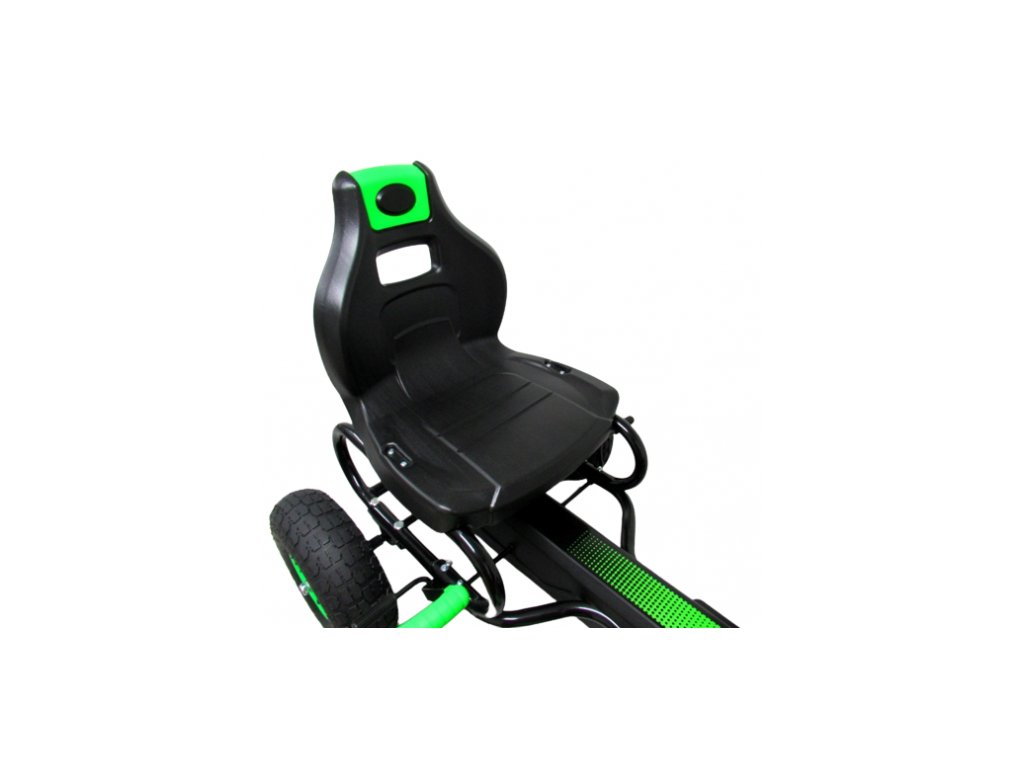Otroški go-kart na pedala je varen in udoben. Ima posebej zasnovan okvir in edinstven dizajn. Predvsem pa ima napihljiva kolesa, zaradi katerih je vožnja udobnejša. Go-kart ima ročno zavoro in nastavljiv sedež na 2 stopnji.