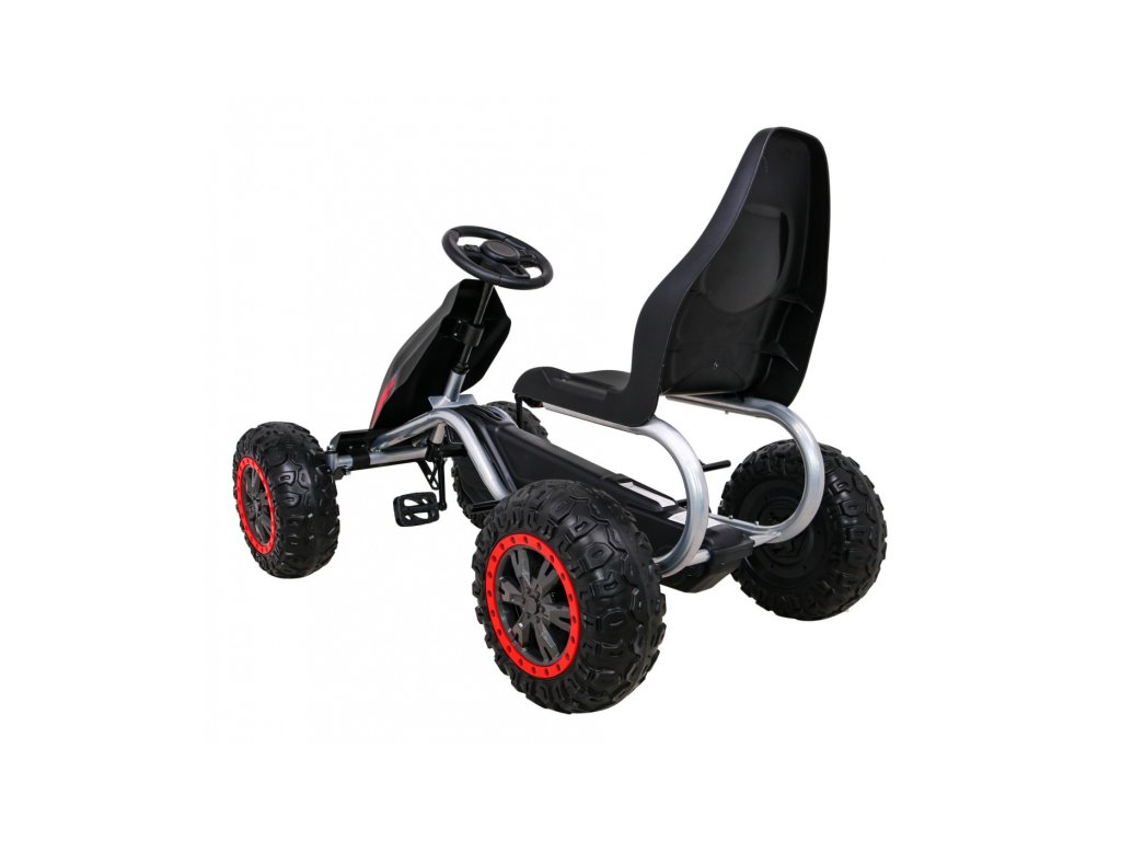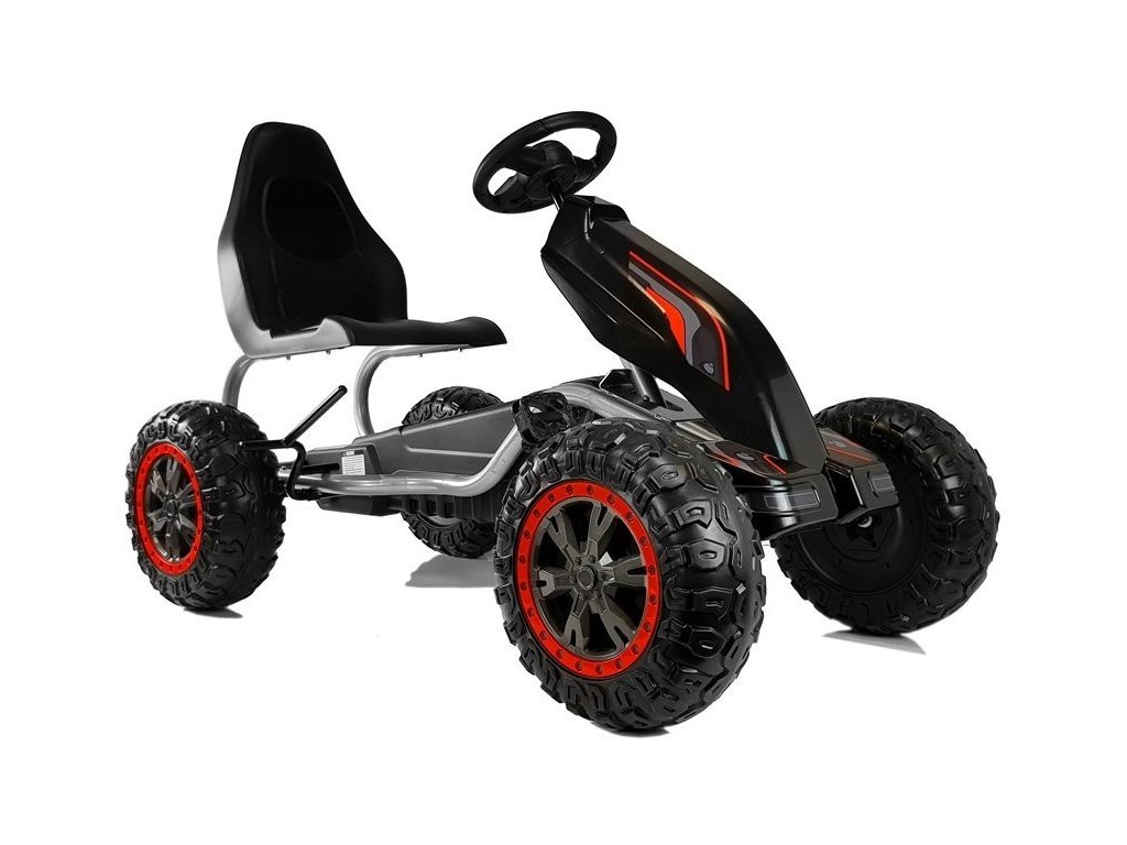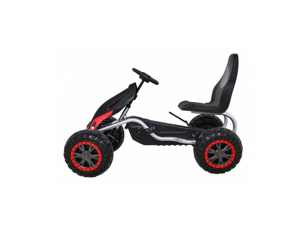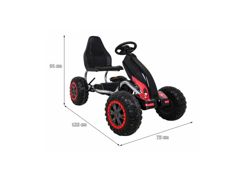 Za varnost otroka je del opreme funkcionalna ročna zavora, zdravju pa prispeva tudi visoko, ergonomsko oblikovan sedež. Vozilo omogoča otroku vožnjo naprej. Kolesa go-karta so narejena iz Eva materiala, kar zagotavlja odličen oprijem na podlago. Otroški pedalni go-kart je odlična oblika gibanja za otroke.