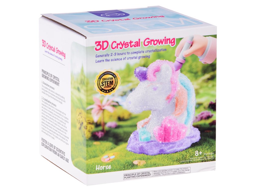 Set je zelo enostaven za uporabo, končni rezultat pa vas bo zagotovo presenetil. Dokončano figurico samoroga preprosto potopite v vnaprej pripravljeno raztopino in nato počakajte, da kristali začnejo rasti na telesu samoroga. Na koncu figurico osušite in umetniško obarvajte. Nekaj čarobnega vas čaka.
