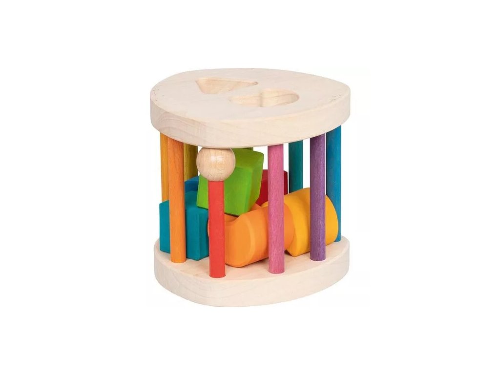 Kletka za vstavljanje je lesena škatla za razvrščanje s kompletom oblikovanih blokov. Za odstranitev kock je dovolj, da palico v kletki preprosto potegnete navzgor. Harmoničen barvni koncept dopolnjuje dizajn in naredi igračo primerno za otroško sobo.
