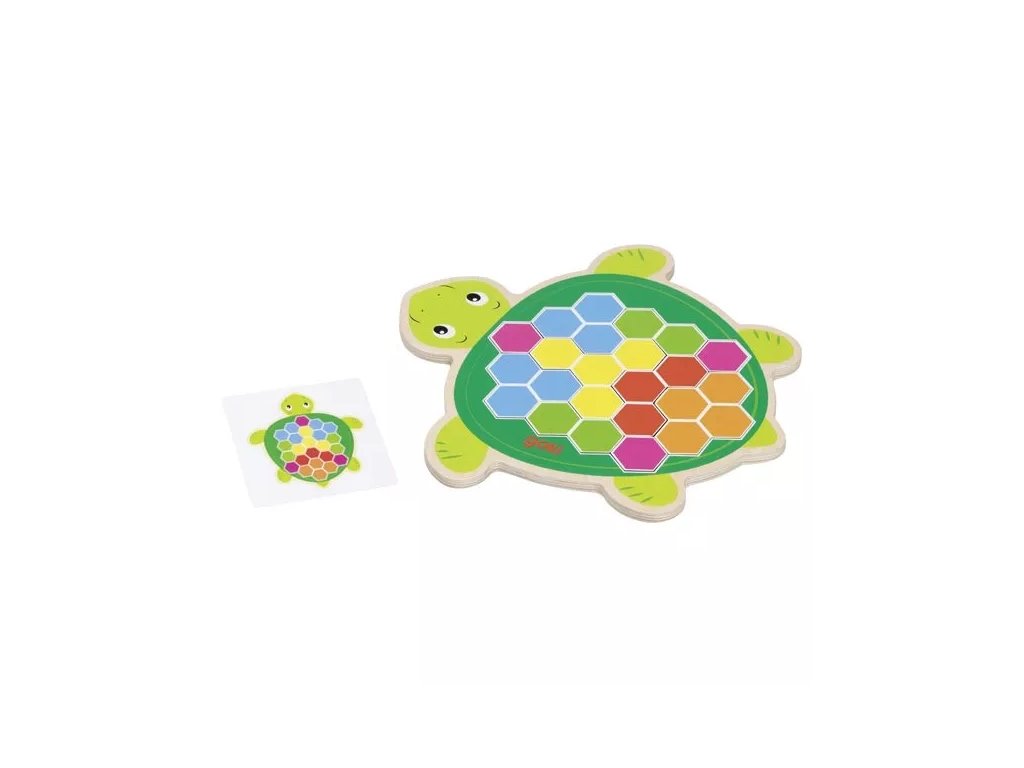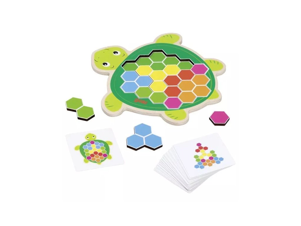 Pisana logična igra Želva nemške znamke Goki je namenjena otrokom od 4. leta starosti. Igra razvija logično mišljenje in prostorsko orientacijo s sestavljanjem delčkov.
