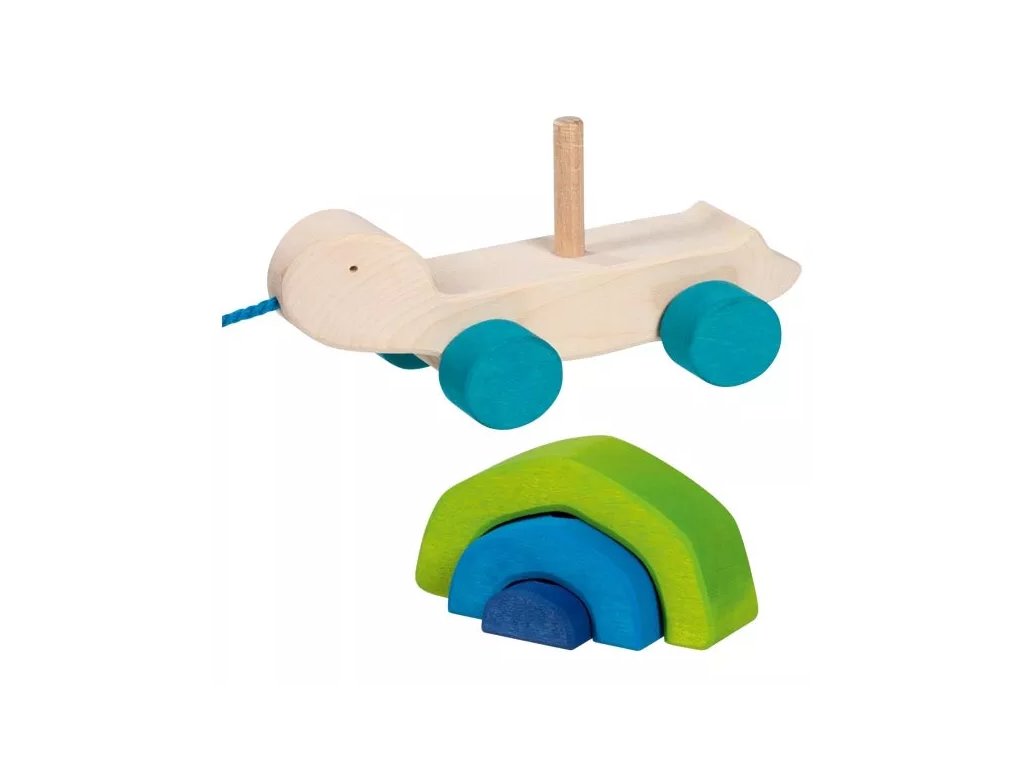 Praktična lesena igrača, ki združuje klasično vlečenje z možnostjo zlaganja. Namenjena je razvoju osnovnih spretnosti in igrivemu odkrivanju.