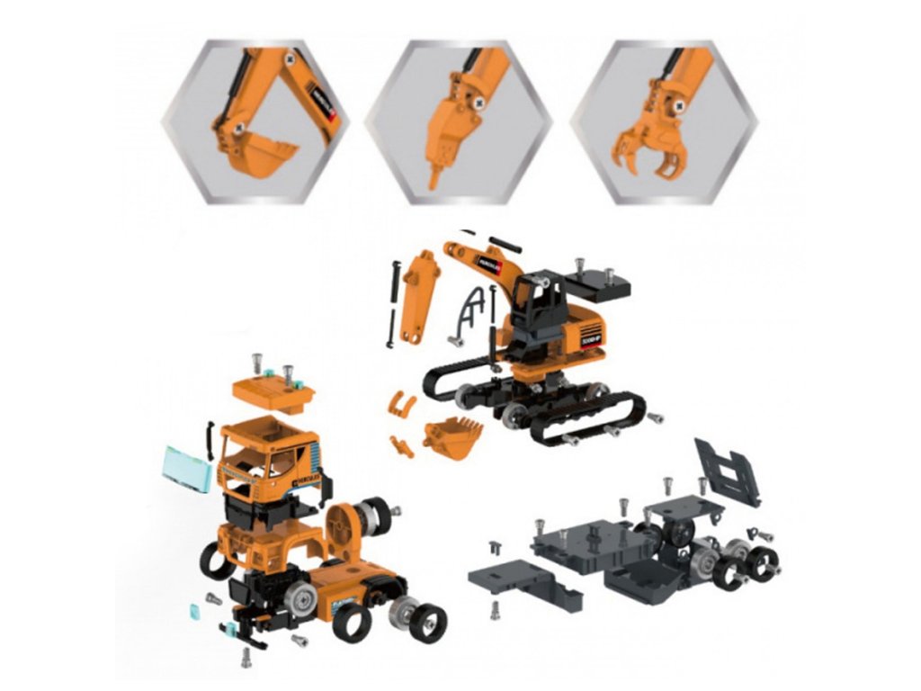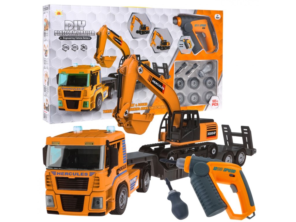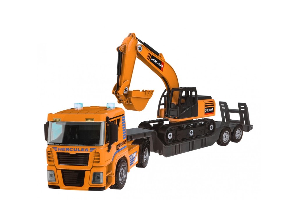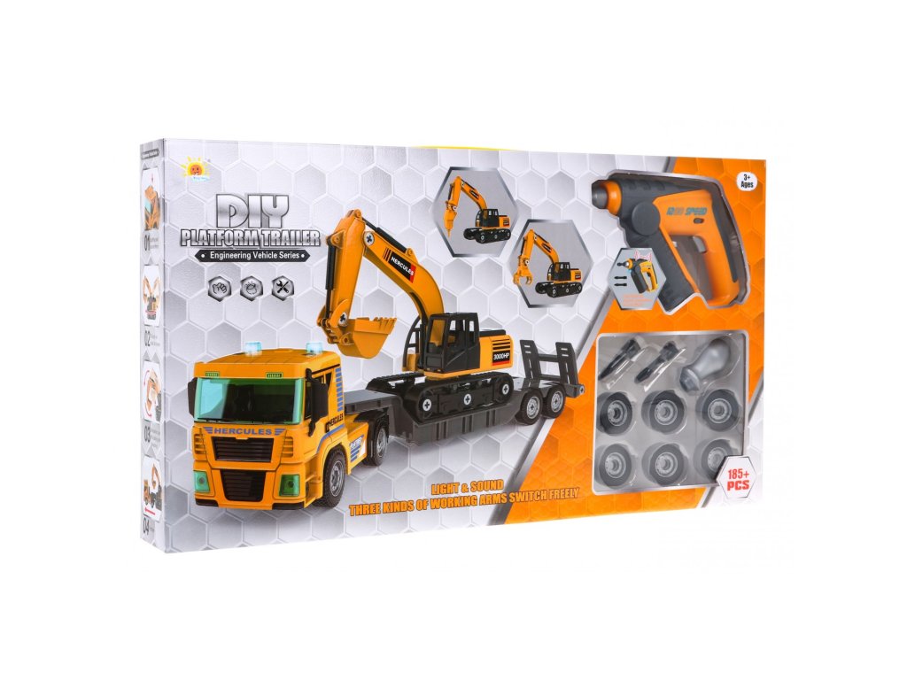 Gradbeni tovornjak in bager bodo razveselili vse fante. Na vrhu tovornjaka utripajo luči in slišijo se zvoki motorja, vzvratne vožnje in hupa. Sveder oddaja zvok pri vrtanju in sveti modra LED dioda. Kabina bagra se vrti za 360 stopinj in roka žlice se dviga navzgor in navzdol. Set vključuje 3 zamenljive nastavke za bager: žlica, sveder in primež.