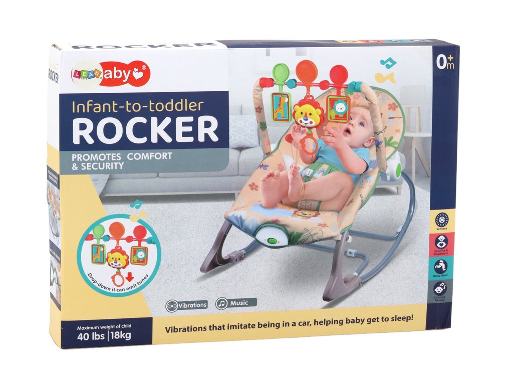 Gugalni stol za dojenčke z ljubkim motivom prijaznega leva. Naš stolček je ne le udoben prostor za počitek malčka, temveč tudi interaktivna igralna cona, ki spodbuja njegov razvoj.