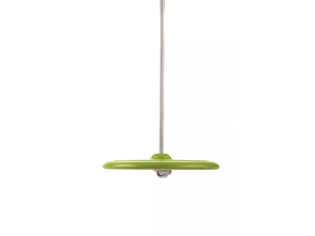 Vesela gugalnica v obliki diska, namenjena za obešanje zunaj in v notranjosti. Gladka površina in izrazita zelena barva olajšata sedenje in pritegneta pozornost otrok. Izdelek je zasnovan tako, da prispeva k razvoju ravnotežja in fizične moči.