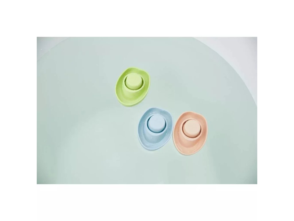 Gumijast moder čoln znamke PlanToys se lahko preoblikuje v podmornico: samo pritisnite sredino trupa in ga zavrtite. Igrača spodbuja razvoj fine motorike, koordinacijo oko–roka in domiselnega mišljenja pri vodnih igrah.