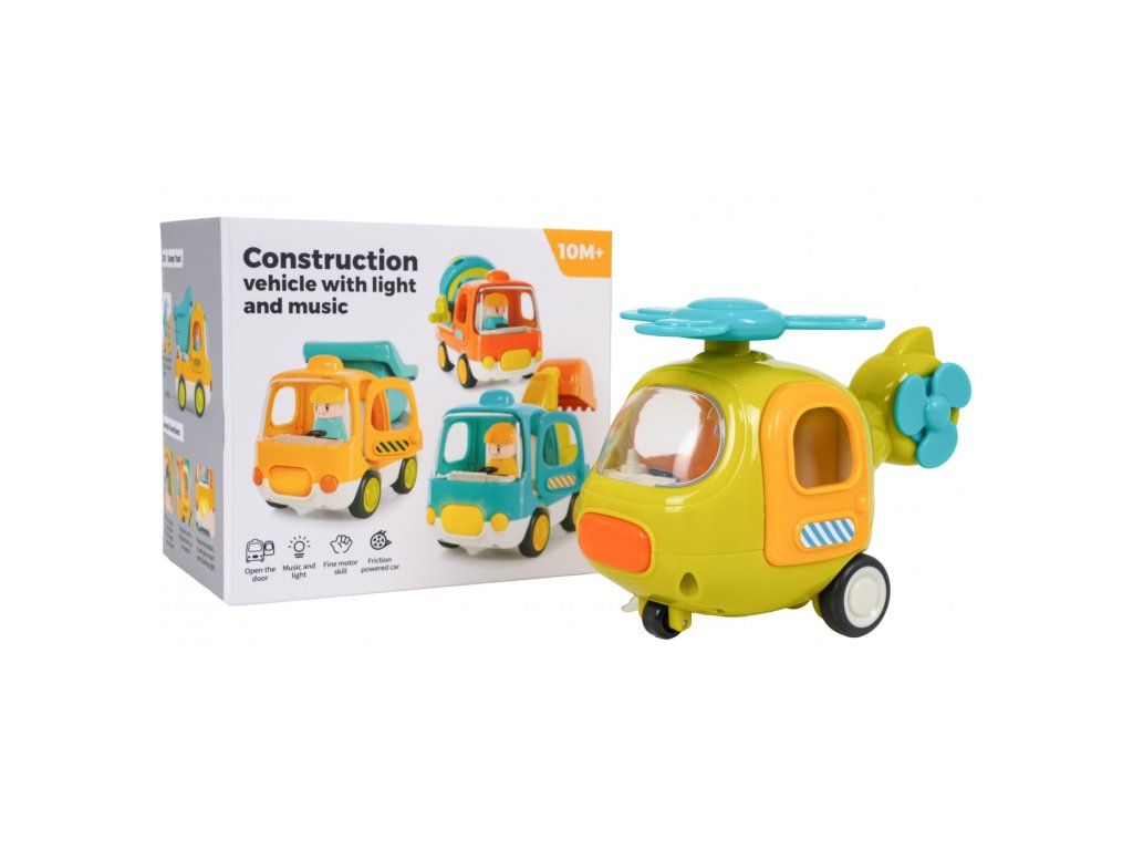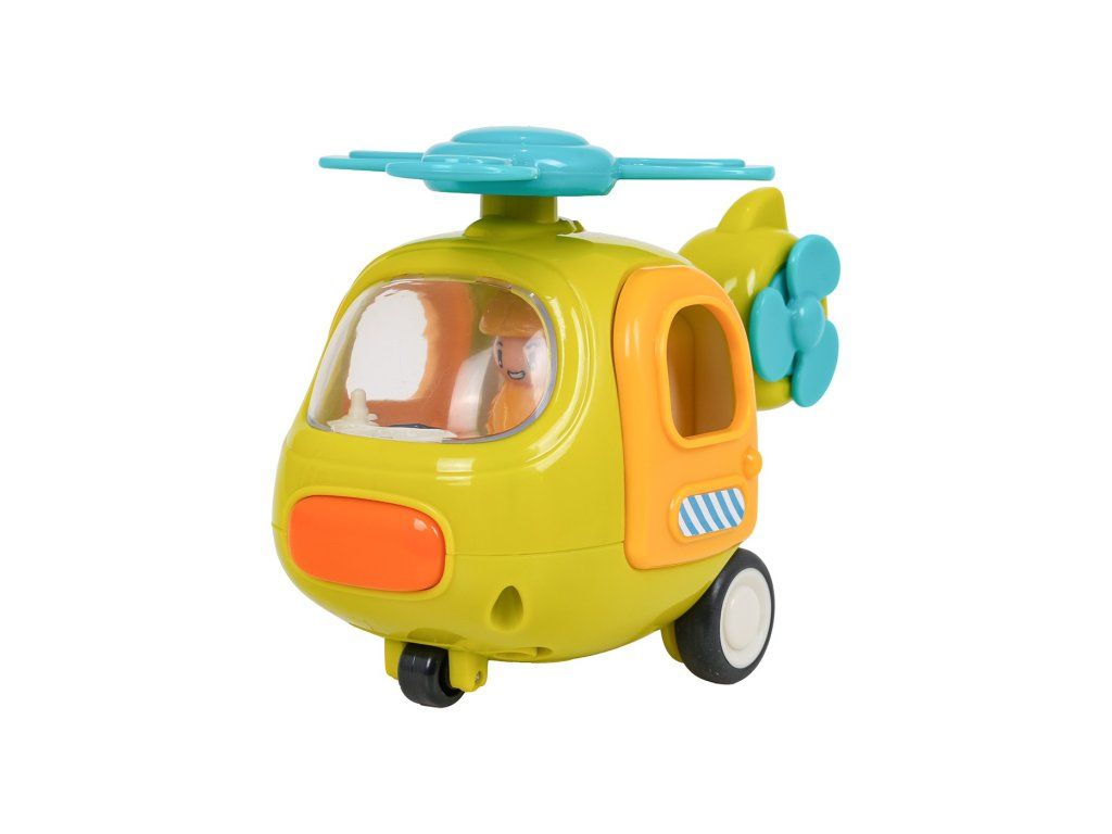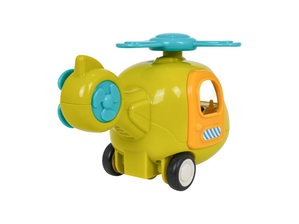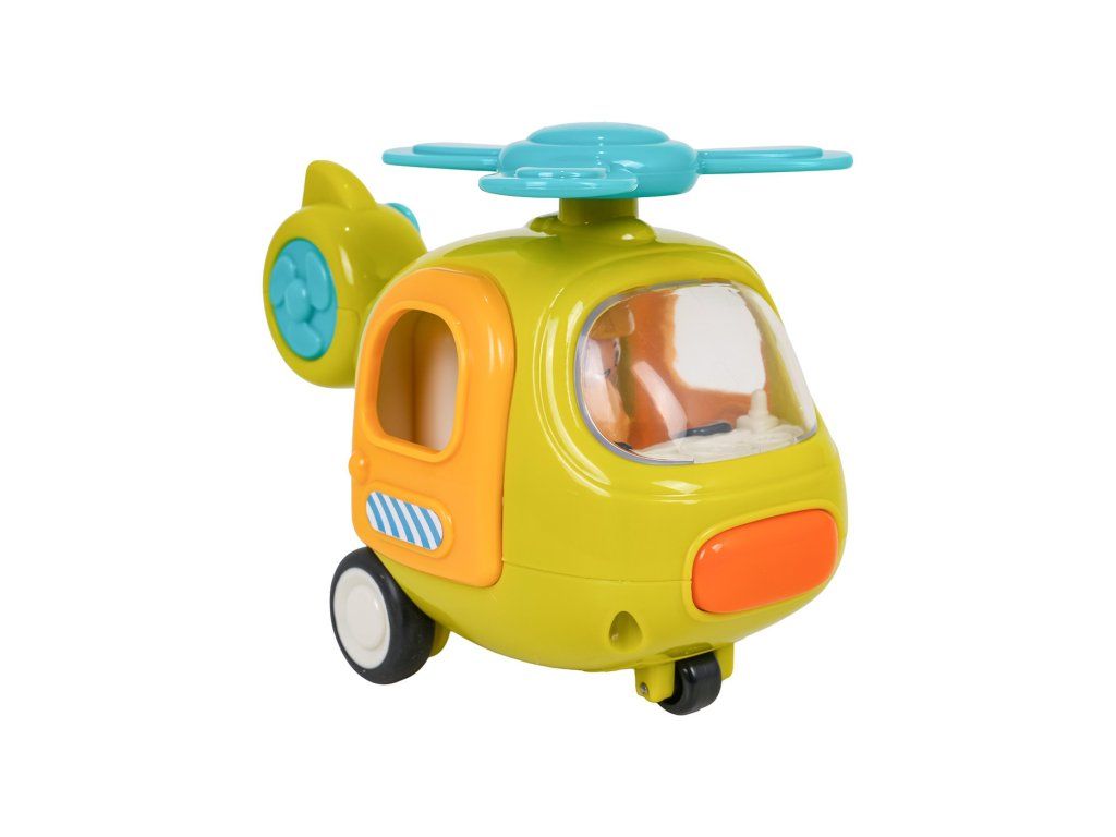 Interaktivni helikopter z zvokom in svetlobnimi učinki za otroke od desetih mesecev starosti. Igrača je izdelana iz trpežne in varne plastike, nima ostrih robov in bo vzdržala tudi najbolj energično igro. Žive barve pritegnejo otrokovo pozornost in ga spodbujajo k igri. Zvočni in svetlobni učinki spodbujajo otrokove čute in dodajo igri realizem. Kolesa se lahko premikajo po tleh, vrata in propeler helikopterja pa so premični. Igrača deluje na 3 baterije tipa AG13 (priložene).