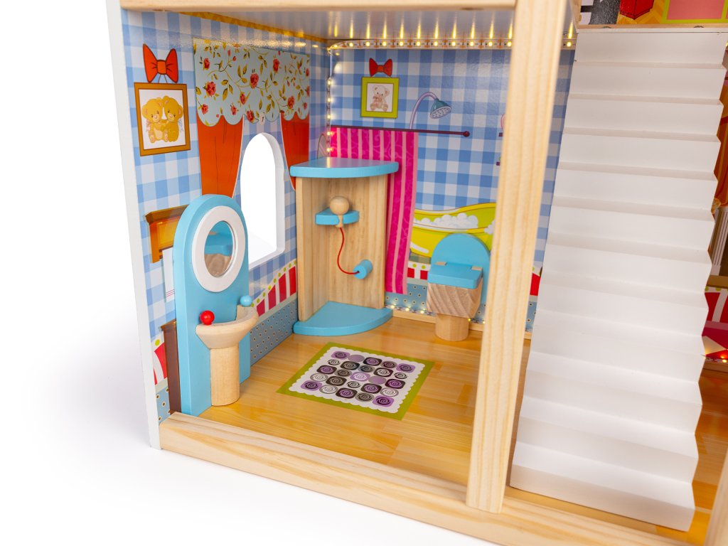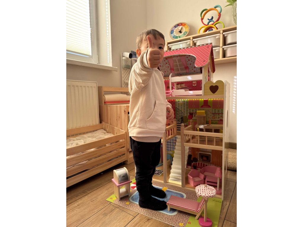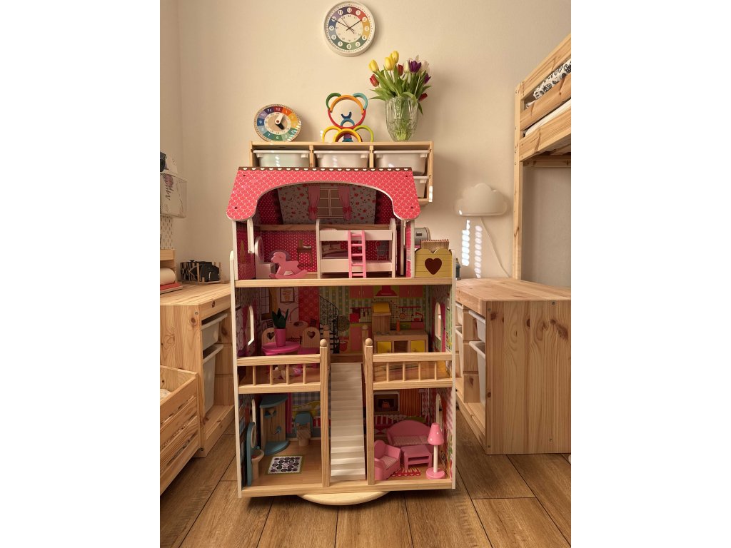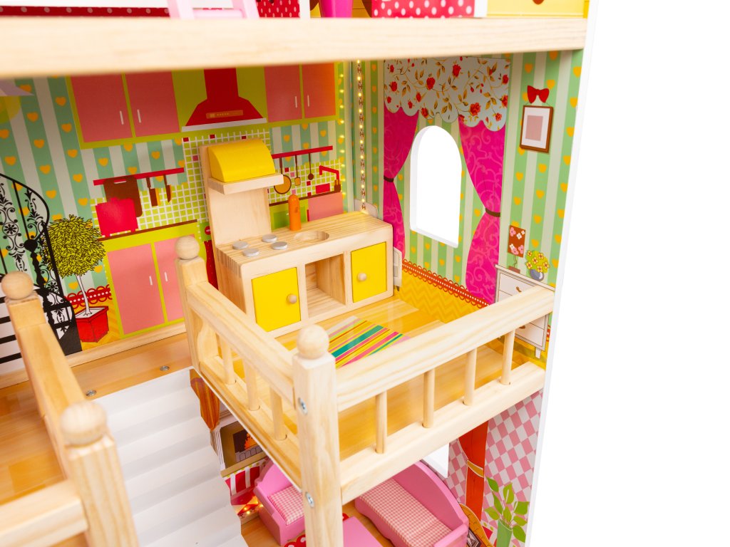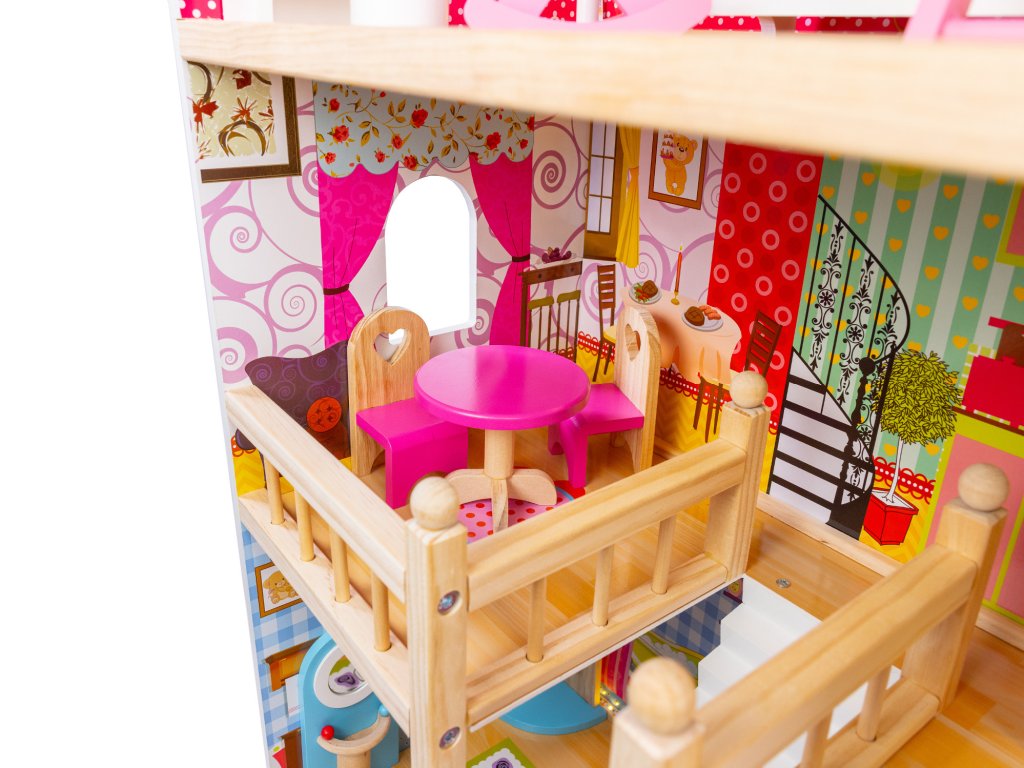 - Bogata notranjost: Tri nadstropja, polna barvitih prostorov – spalnica, kuhinja, kopalnica, dnevna soba, jedilnica in balkon. Otroci si lahko sami uredijo notranjost, razvijajo ustvarjalnost in estetski čut.
