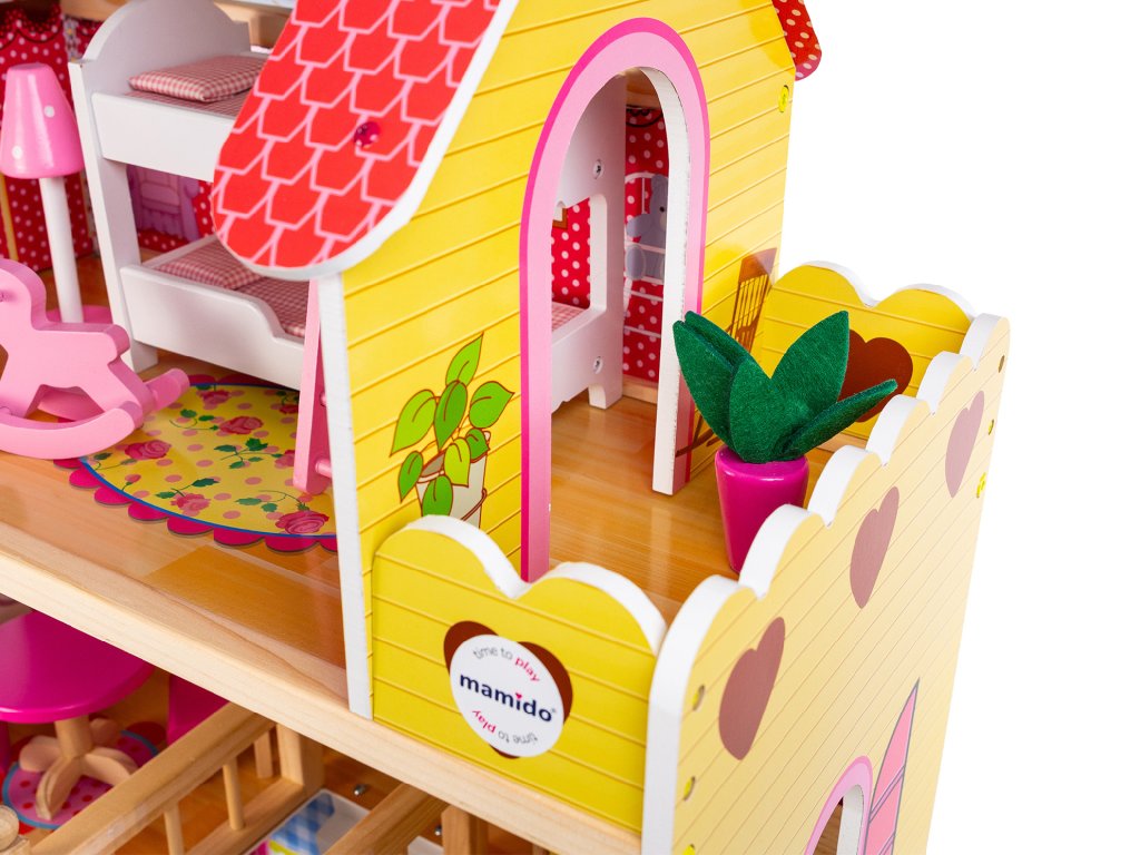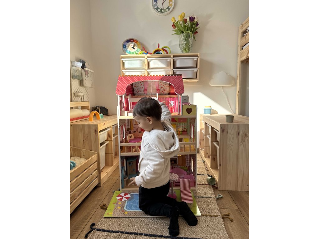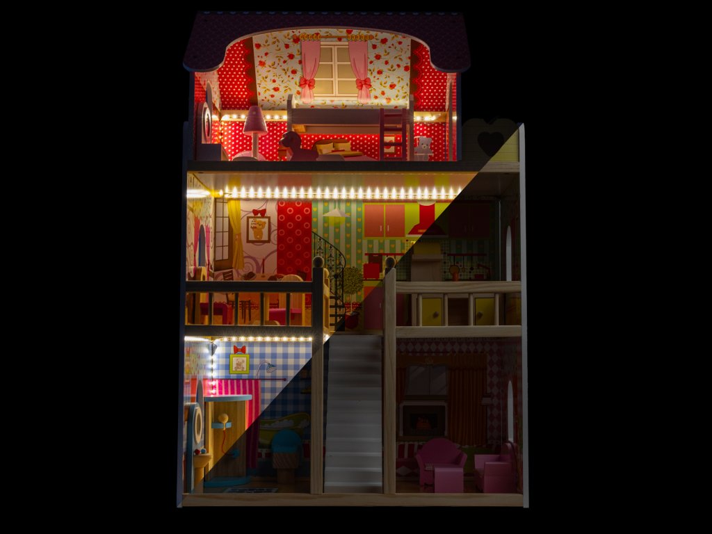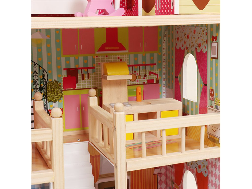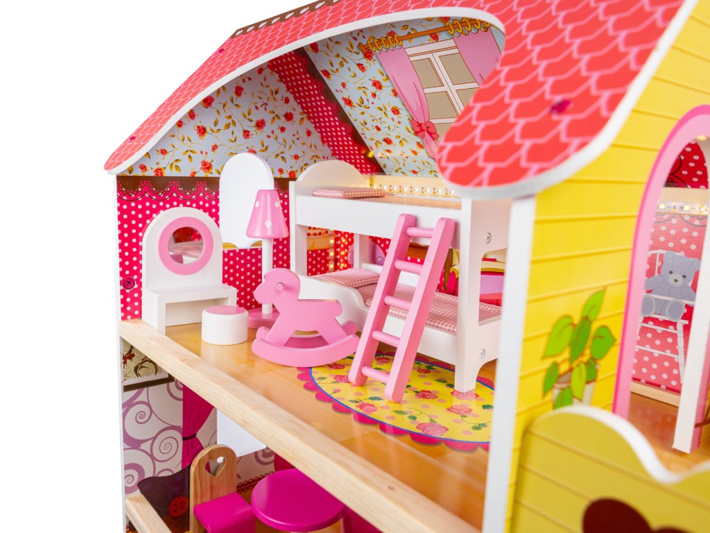 - Bogata notranjost: Tri nadstropja, polna barvitih prostorov – spalnica, kuhinja, kopalnica, dnevna soba, jedilnica in balkon. Otroci si lahko sami uredijo notranjost, razvijajo ustvarjalnost in estetski čut.