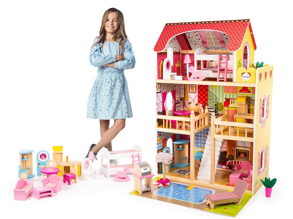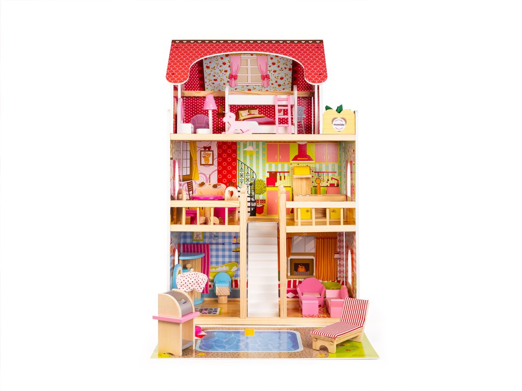 Hiša za lutke Stacy XXXL 90cm z bazenom + LED osvetlitev 16 kosov pohištva - Razpakirano - S-W101