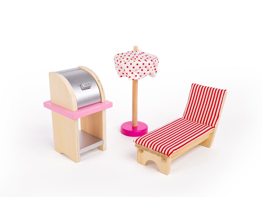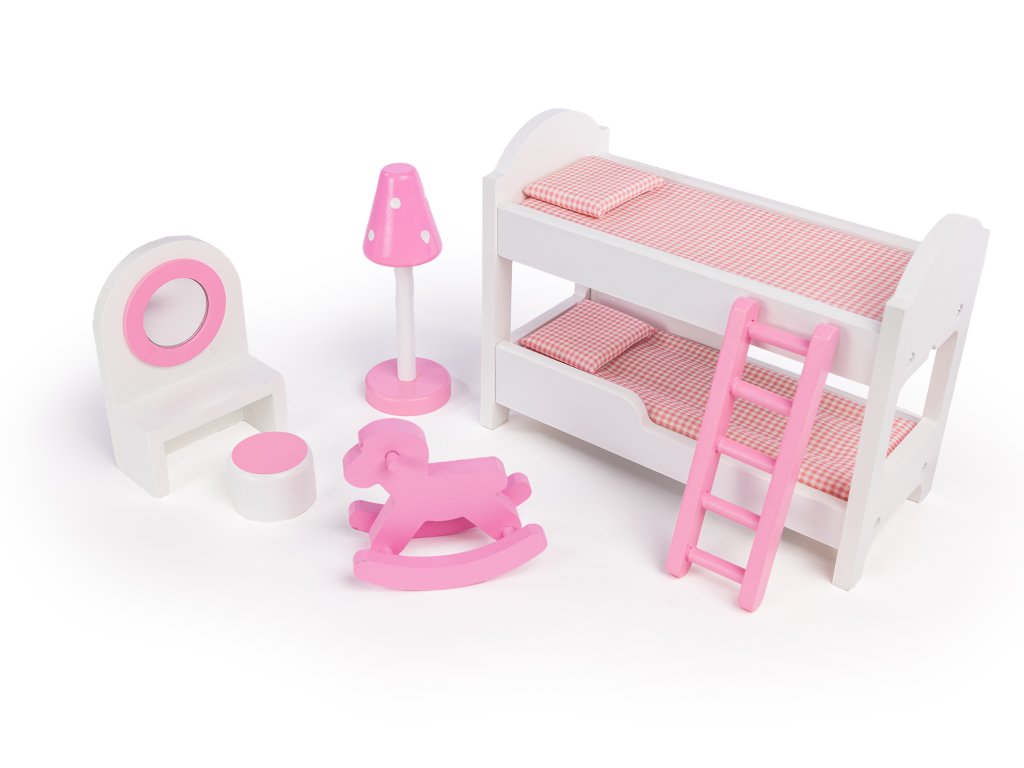 - Stilski dodatki: Del paketa so pohištvo in dodatki, kot so postelja, kavč, stol, miza, svetilka, gugalni konjiček, stopnice in celo toaletna mizica. Zahvaljujoč njim je vsaka igra edinstvena in realistična.