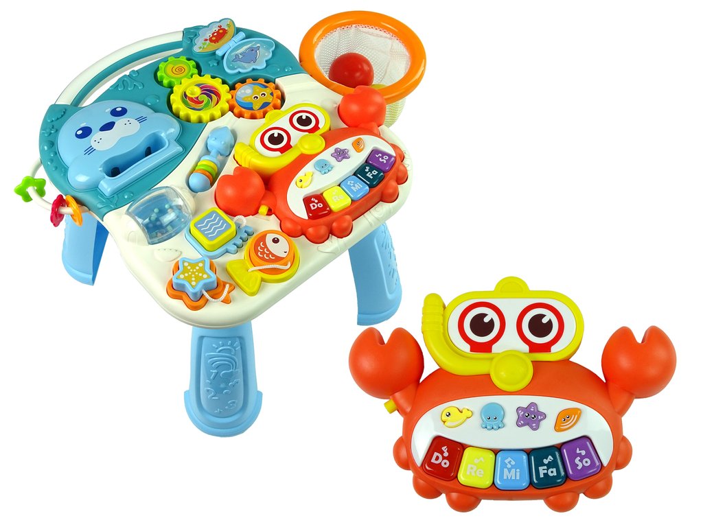 - večbarvni klavir, ki pomaga pri učenju zvokov, in je sestavljen iz pisanih tipk v obliki rakovice