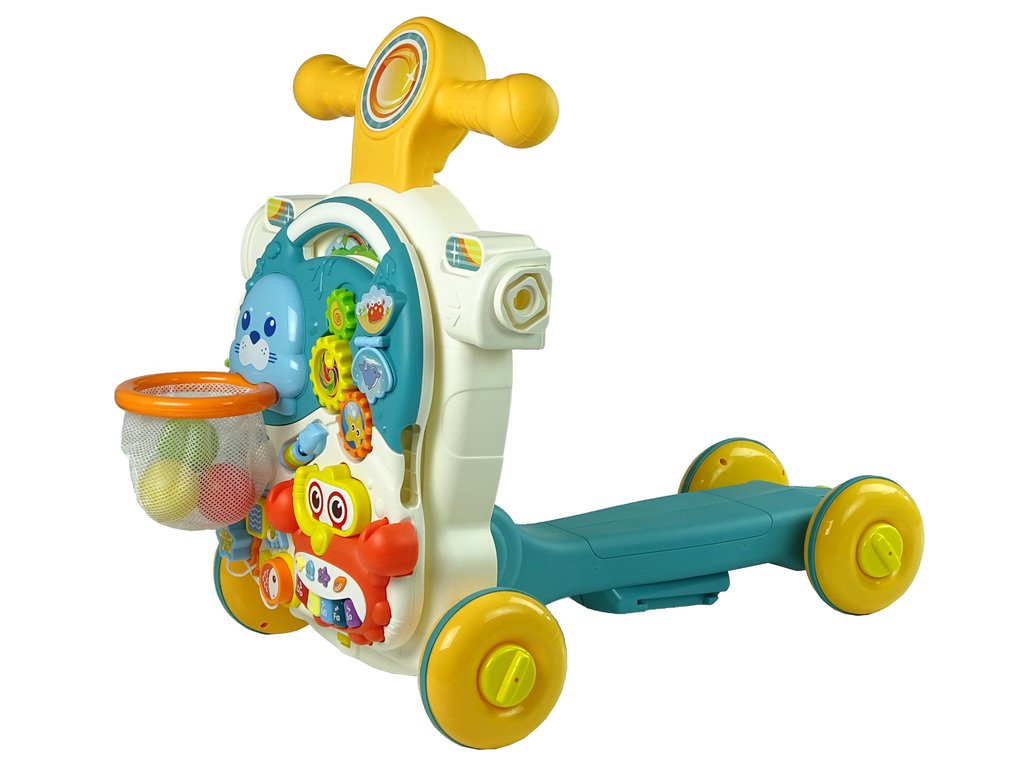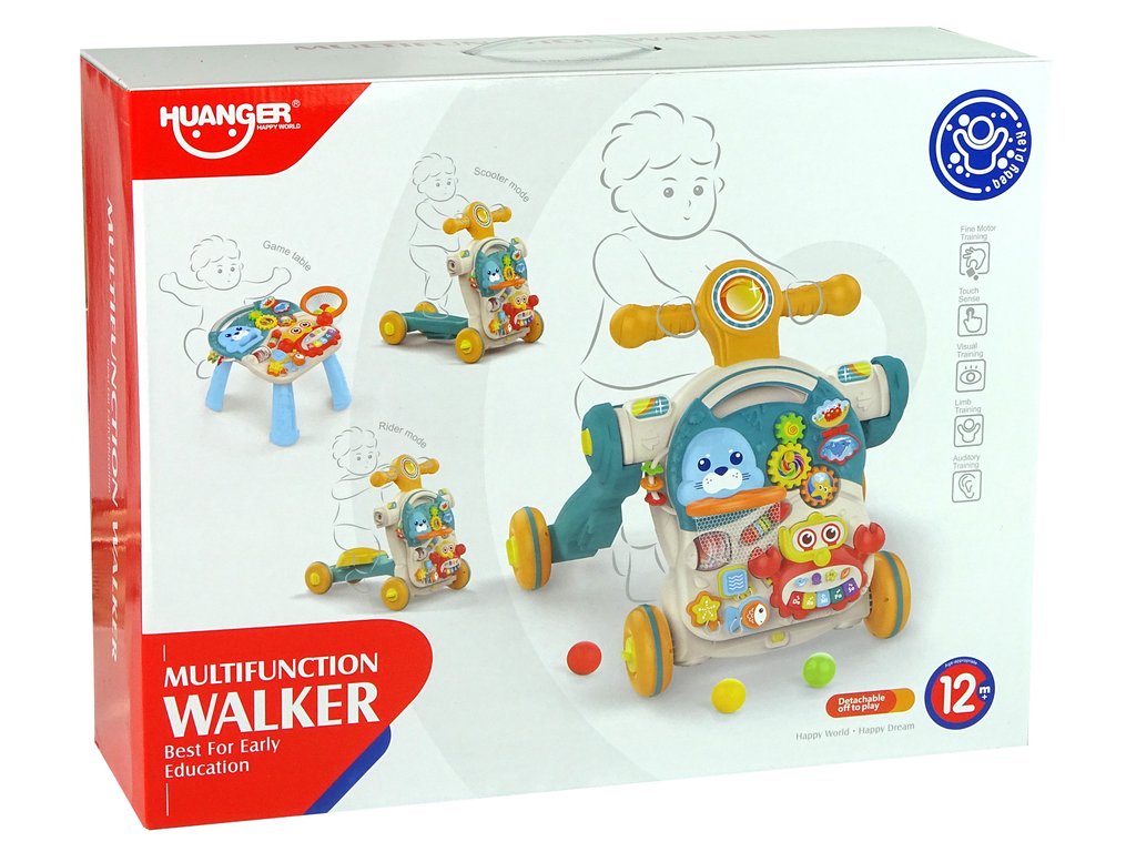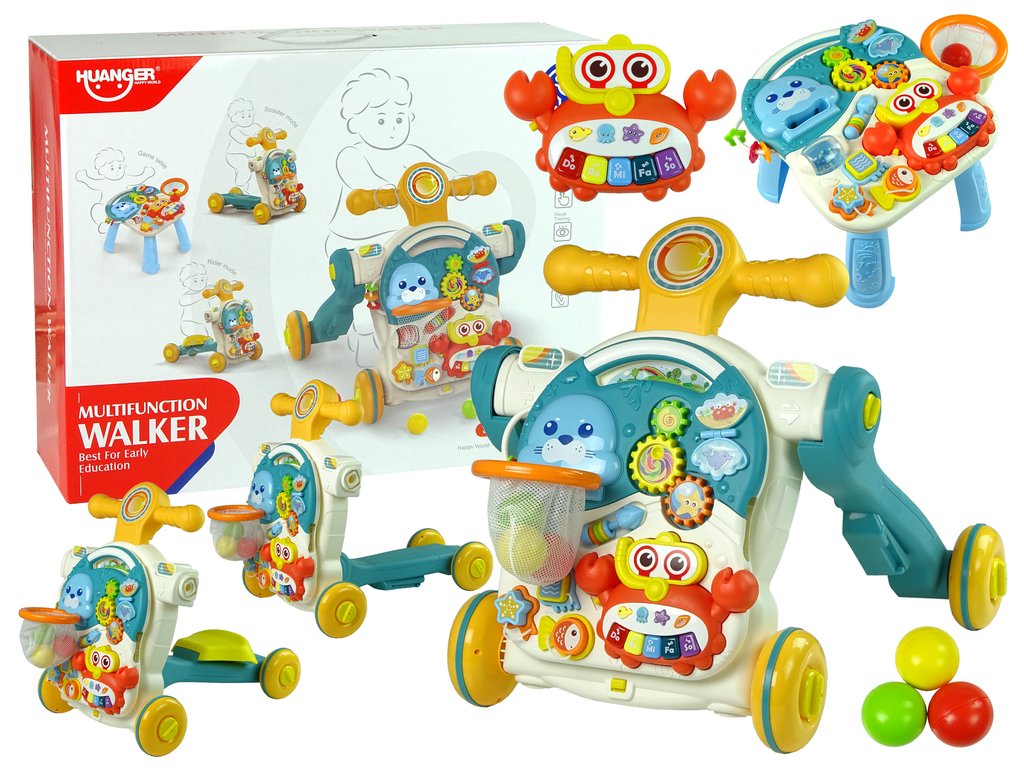 Velika prednost igrače je, da jo lahko uporabljate na štiri različne načine. Malček se lahko odloči, kaj izbrati. Lahko se začne igrati s samim klavirjem, uporabiti učni stoliček, možnost je tudi vožnja s kolesom ali vožnja s skirojem, kar spodbuja učenje hoje. Varna in nedrseča kolesa. Učna hodulja z interaktivno zvočno tablo je zelo enostavna za uporabo.