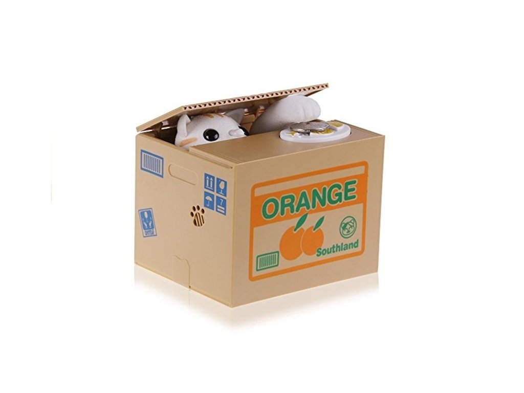Vsak otrok rad zbira svoje prihranke. Mačji hranilnik za denar bo vašega otroka še bolj spodbudil k varčevanju. Pritisnite gumb na škatli, mačka dvigne pokrov in s tačko povleče denar noter.