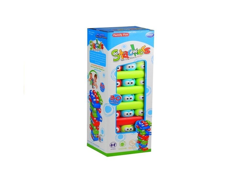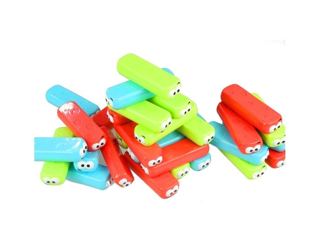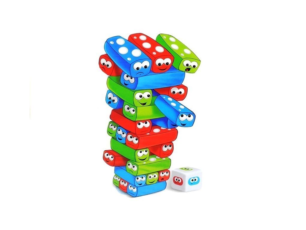 Cilj je zgraditi stolp in biti dovolj previden in spreten, da stolp ne pade. Poseben poudarek so živahne barve, ki bodo otrokom zagotovo všeč. V kompletu je igralna kocka, ki jo lahko tudi uporabite.