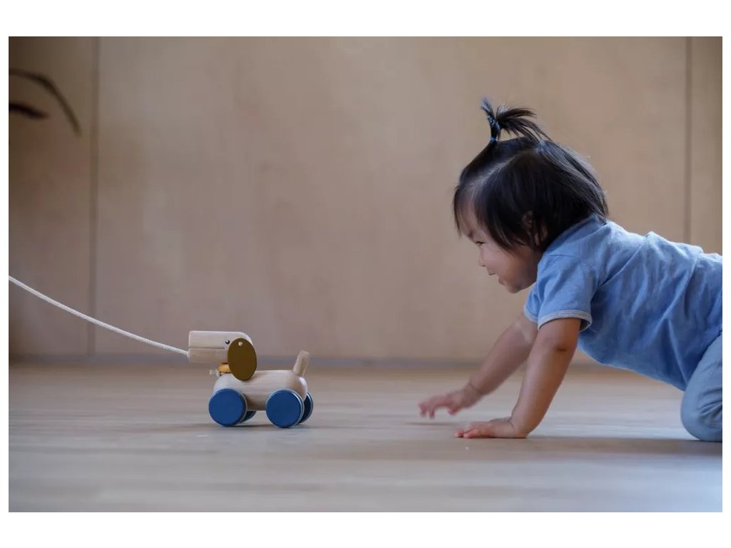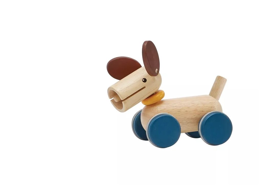 Ta igrivi leseni kuža znamke PlanToys je zasnovan za malčke in spodbuja razvoj fine motorike, ravnotežja in koordinacije pri aktivni igri.