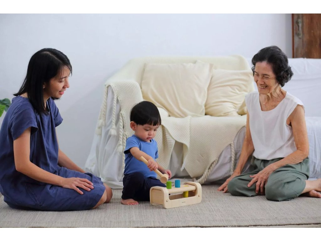 Lesena igrača za zabijanje – klop, PlanToys