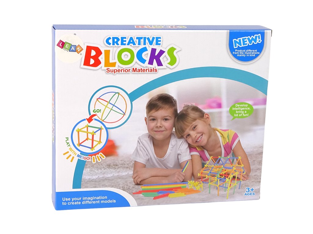 - Igra vključuje ustvarjanje različnih stavb in prostorskih struktur. Za to uporabljamo plastične slamice in povezovalke. Velikost je prilagojena povprečnim uporabnikom, zato igranje ne bo nikomur povzročalo težav.