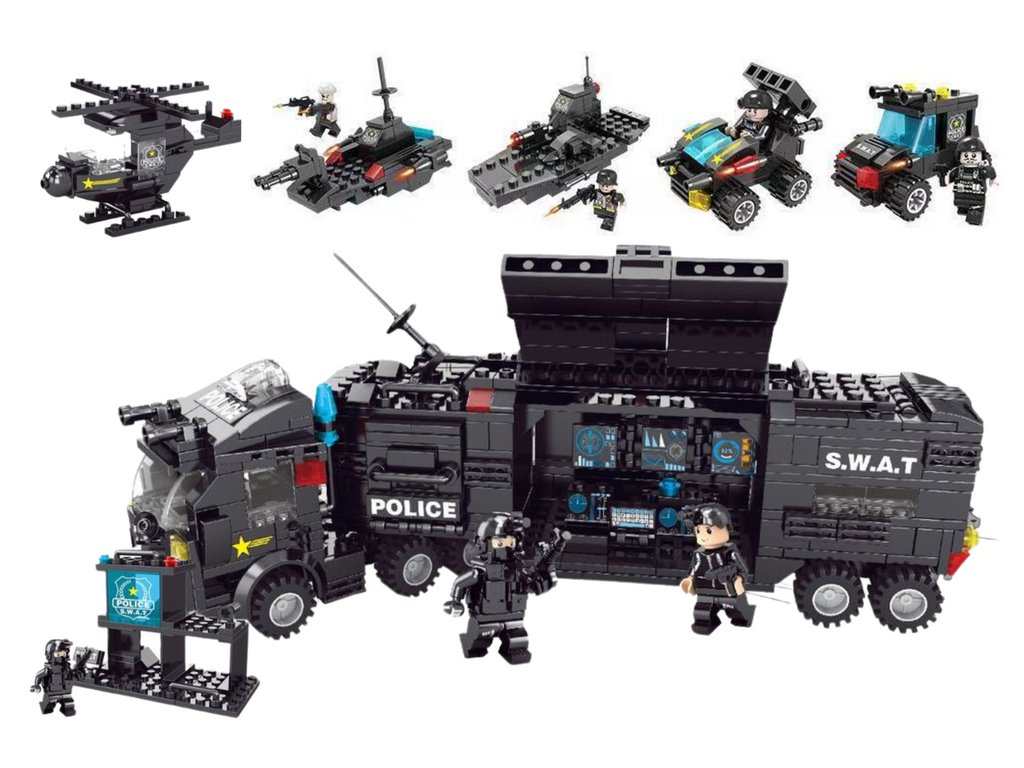 Komplet sestavljank s tematskim poudarkom na specijalnih enotah, ki otrokom omogoča raziskovanje fascinantnega sveta specijalnih operacij. Komplet vsebuje različne modele, vključno z bazo, čolnom, letalom in terenskimi vozili, kar zagotavlja ure kreativne zabave in učenja. Komplet ponuja različne dizajne vozil specijalnih enot, kot so baza, čoln, letalo in terenska vozila. Vsak model se odlikuje po edinstvenem dizajnu in konstrukciji, zaradi česar je komplet privlačen in zanimiv za otroke.