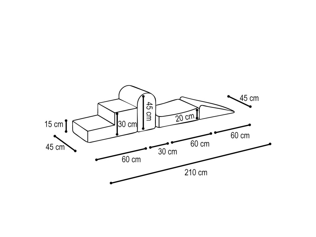 Trikotnik: gora za osvojiti ali most, ki ga je treba prečkati. Dimenzije: 45 cm x 60 cm x 20 cm