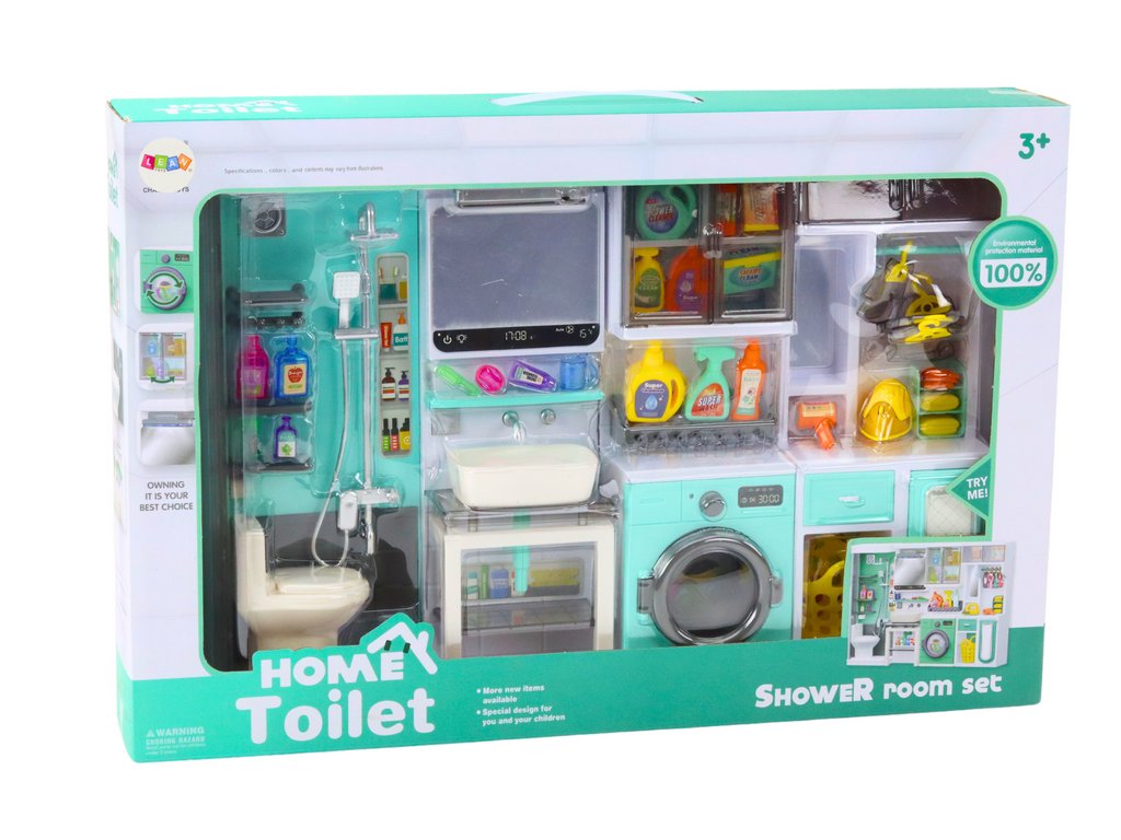 Igralni set Kopalnica 4 v 1 Tuš WC Pralni stroj Dodatki