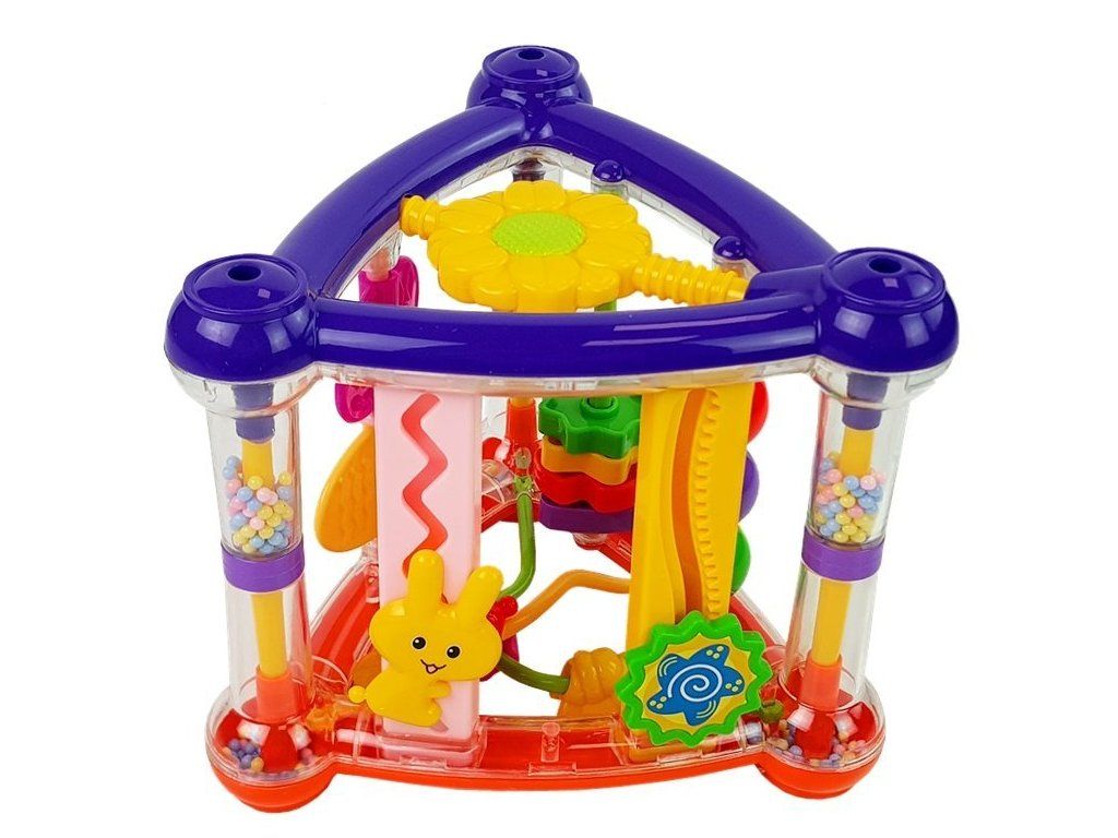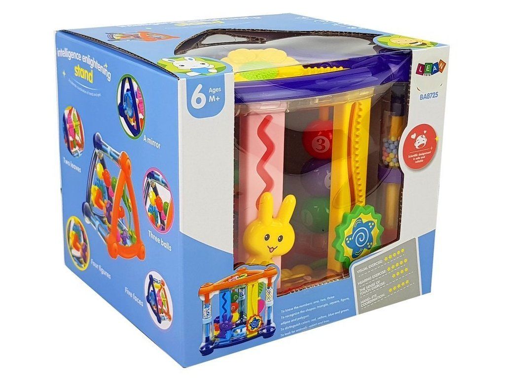 Interaktivna izobraževalna kocka za najmlajše modro-rdeča razvija otrokove ročne spretnosti in domišljijo na več načinov. Igrača ima tri stranice, na vsaki strani so zanimive funkcije. Igrača je stabilno zasnovana in ima živahne barve.