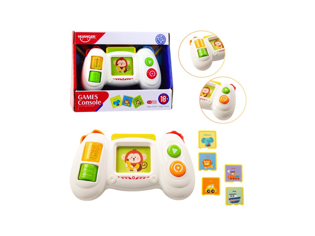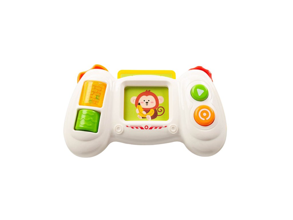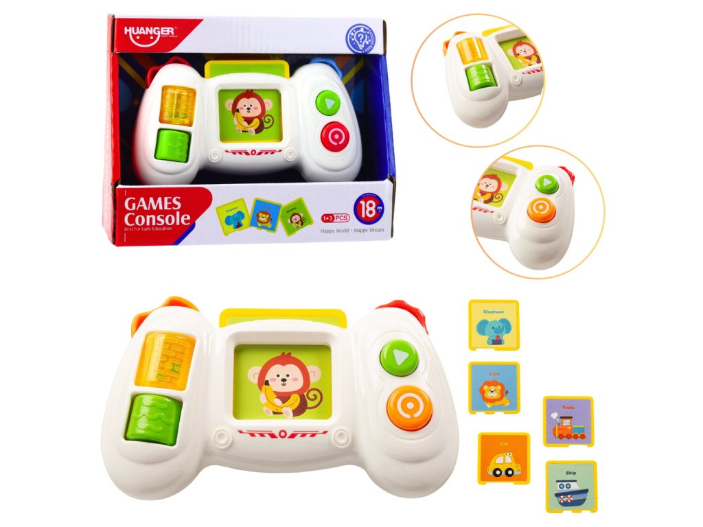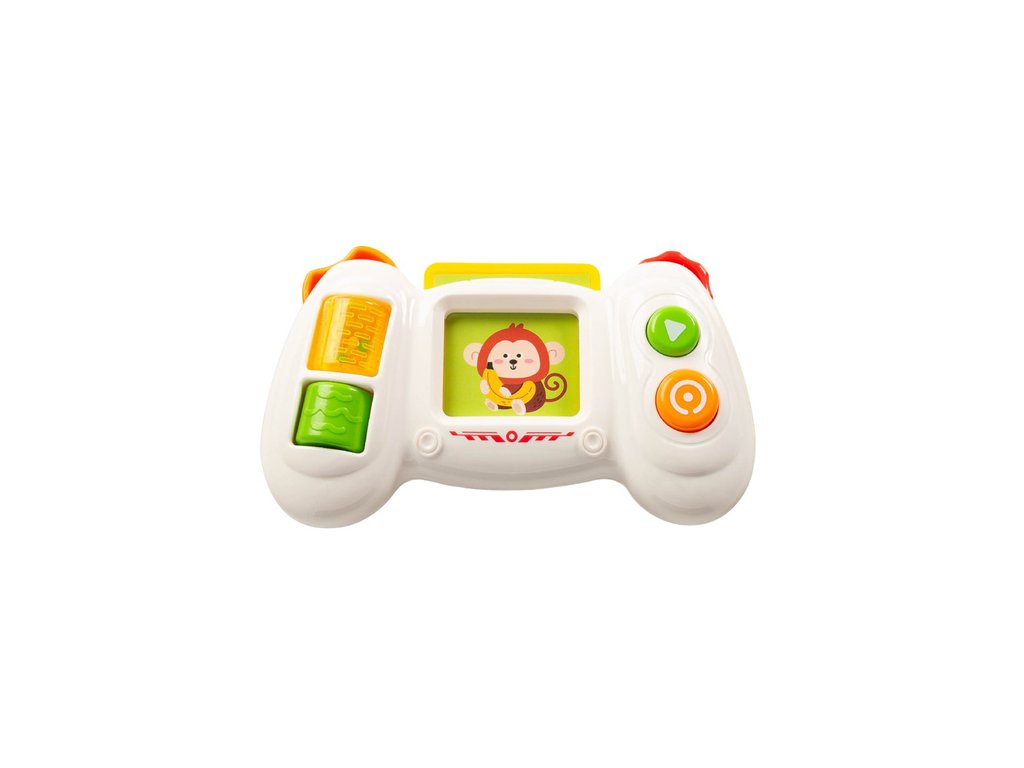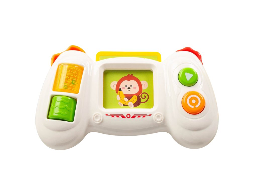 Interaktivna konzola je izobraževalna igrača, namenjena najmlajšim otrokom od 18 mesecev. Zahvaljujoč vgrajenim zvokom in melodijam se malček uči prepoznavati zvoke, razvija slušno občutljivost in občutek za ritem. Različni gumbi in teksture aktivirajo dotik, podpirajo razvoj čutov in urijo otrokovo ročno spretnost.