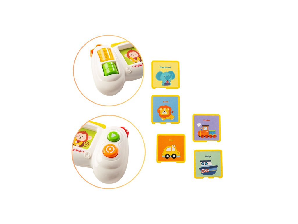 Komplet vsebuje pisane interaktivne kartice , ki jih je mogoče namestiti v konzolo. Otroku omogočajo spoznavanje živali, prevoznih sredstev in predmetov iz okoliškega sveta, podpirajo razvoj spomina in koncentracije ter izboljšujejo natančnost gibov majhnih rok.