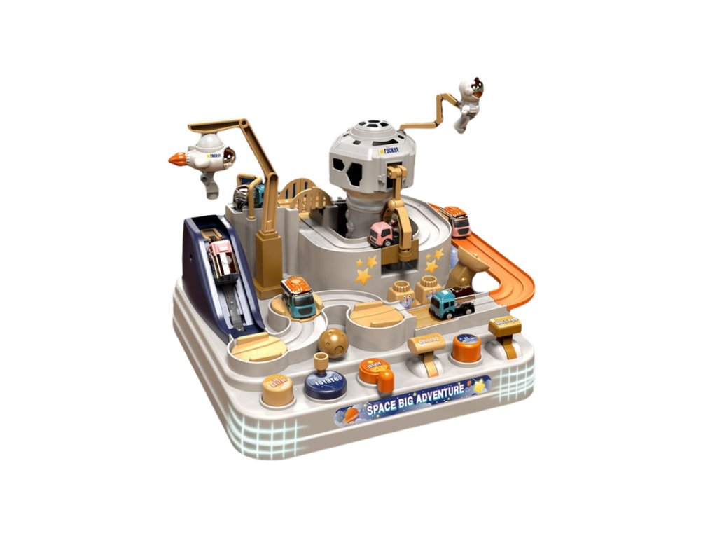 Predstavljamo neverjetno, večnamensko interaktivno progo , ki ne bo navdušila le s svojo zasnovo in kakovostjo izdelave, temveč bo tudi aktivno podpirala razvoj vašega otroka. Gre za pravo vesoljsko bazo, polno dogodivščin, kjer bodo mali raziskovalci našli do 10 različnih mehanskih dejavnosti – vse se upravljajo ročno, brez potrebe po baterijah. Med značilnostmi so raketni metalci, premikajoči se žerjavi, tobogani, dvigala, predori, odlagališča, vrtljive ploščadi in pisani gumbi , ki aktivirajo druge elemente postavitve.