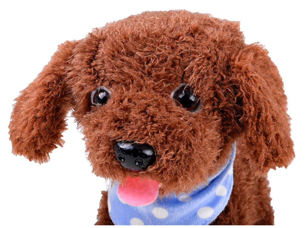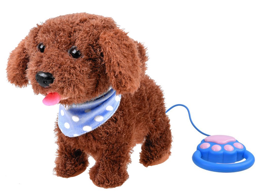 Interaktivni hodeči kuža z vrvico izpolni sanje vsakega otroka o svojem štirinožnem prijatelju. Ta kuža zahteva 3 baterije tipa AA 1,5V, ki ga obudijo - laja, hodi, maha z repom ter prinaša veselje. Zahvaljujoč senzorjem se odziva na dotik in ob pohlajevanju oddaja lajež ter vesele zvoke.