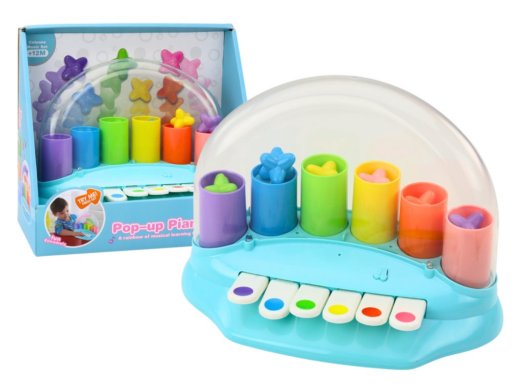 Interaktivni klavirček z zvezdicami, ki vskakujejo, moder je čudovita igrača, ki najmlajše popelje v čarobni svet glasbe in svetlobe. Zasnovana z mislijo na varnost in razvoj otroka, ta klavirček ponuja ne le zvoke, ampak tudi vizualne učinke v obliki barvitih zvezdic, ki ob vsakem pritisku tipke poletijo v zrak.